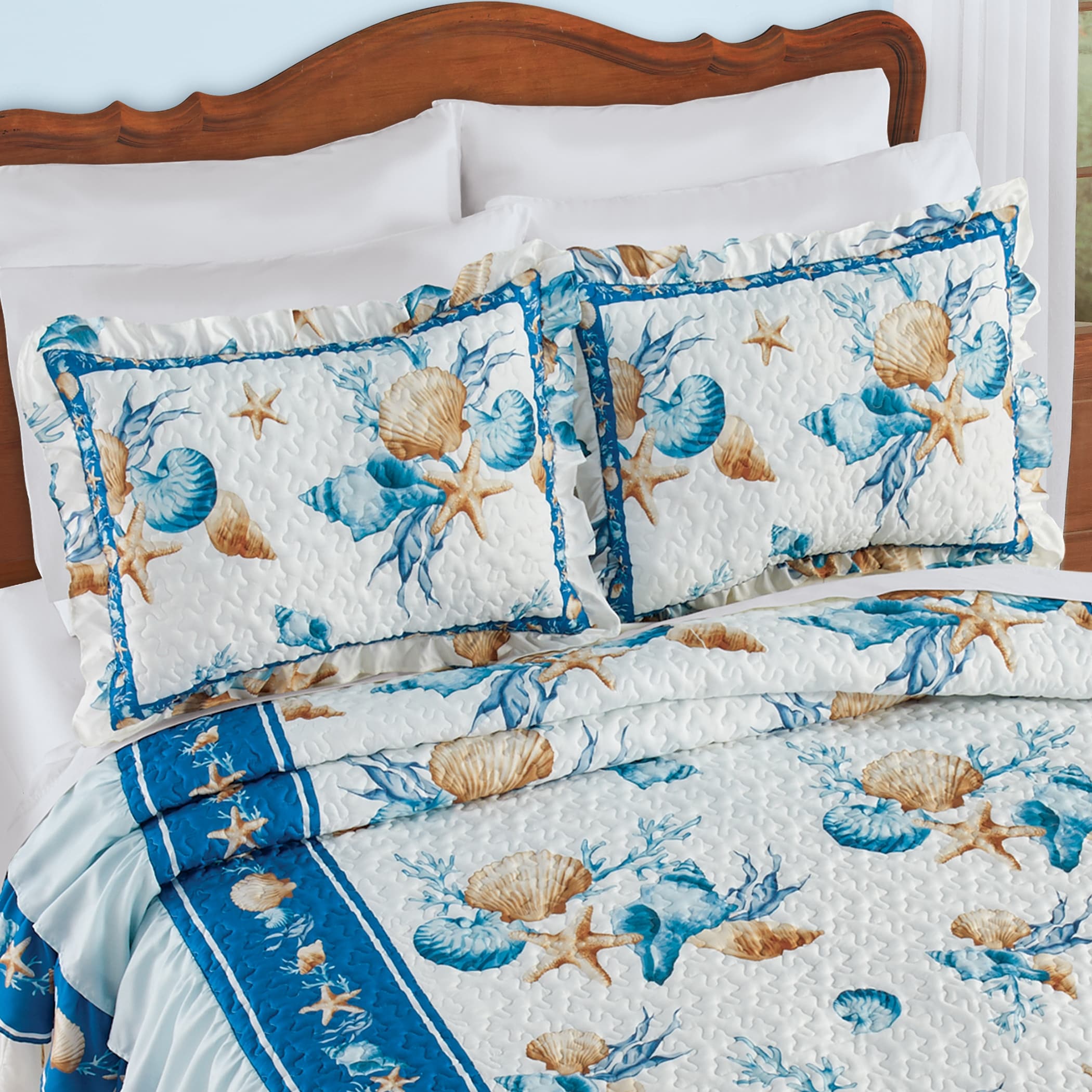 Charming Coastal Blue Lagoon Ruffled Bedspread