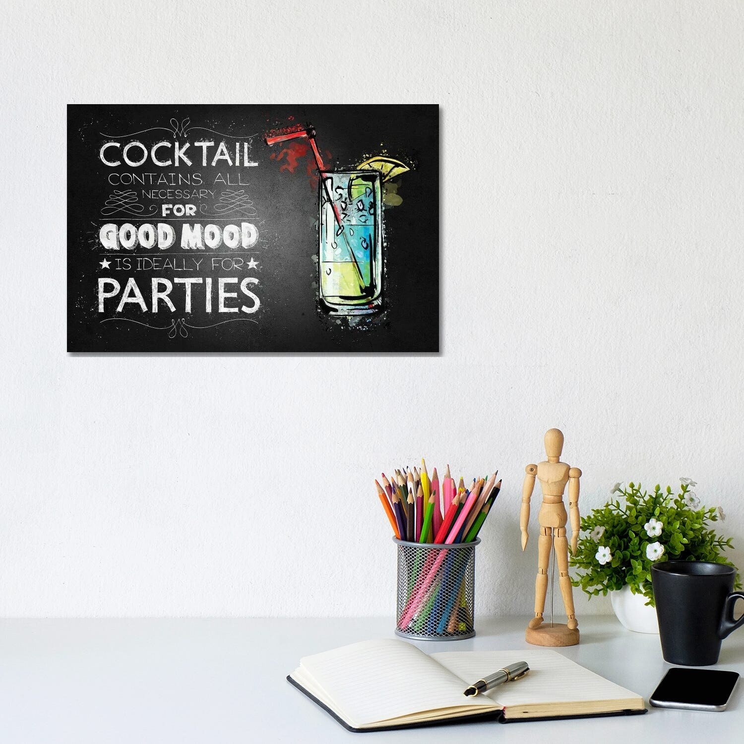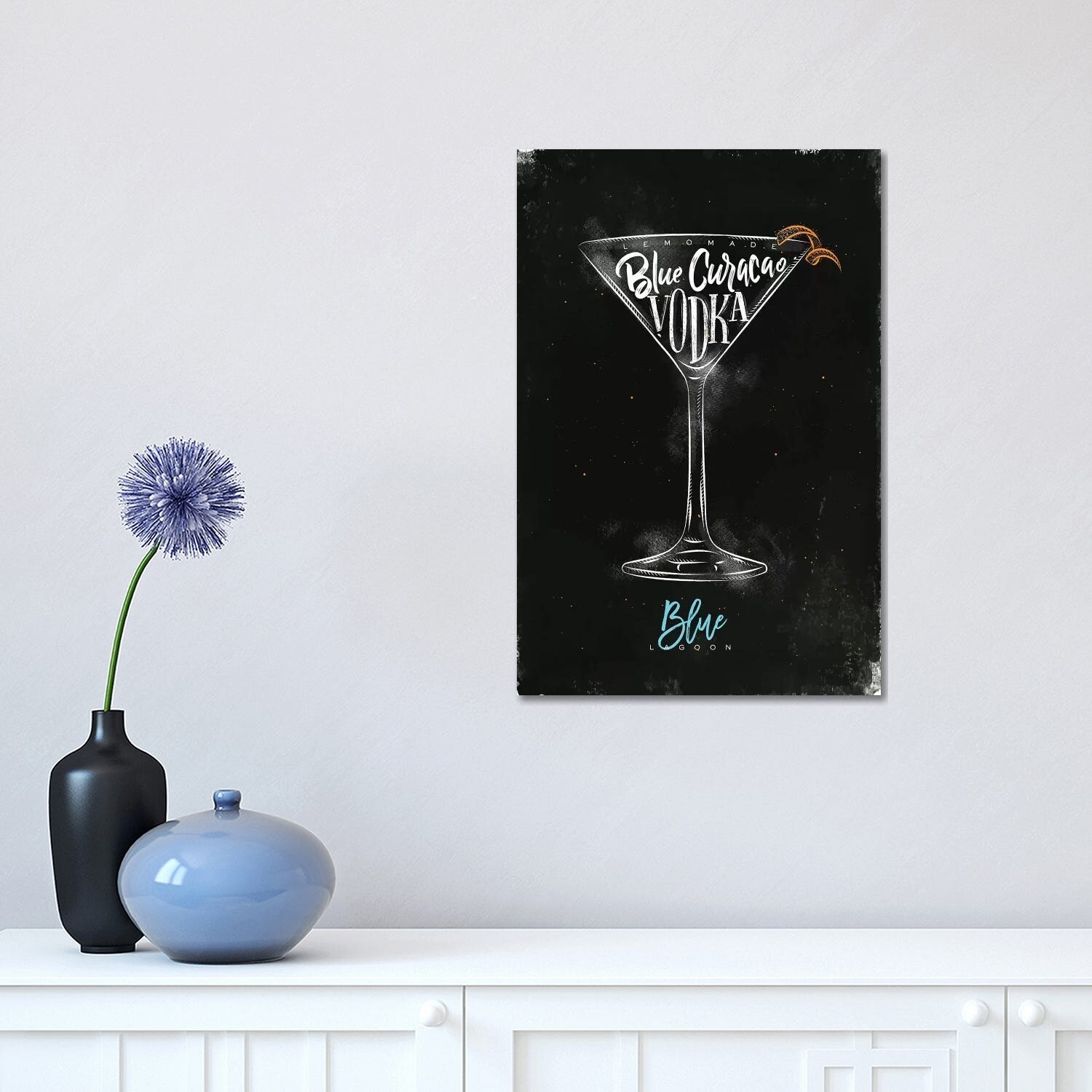 iCanvas "Blue Lagoon Cocktail Black Background" by Pixy Paper Canvas Print