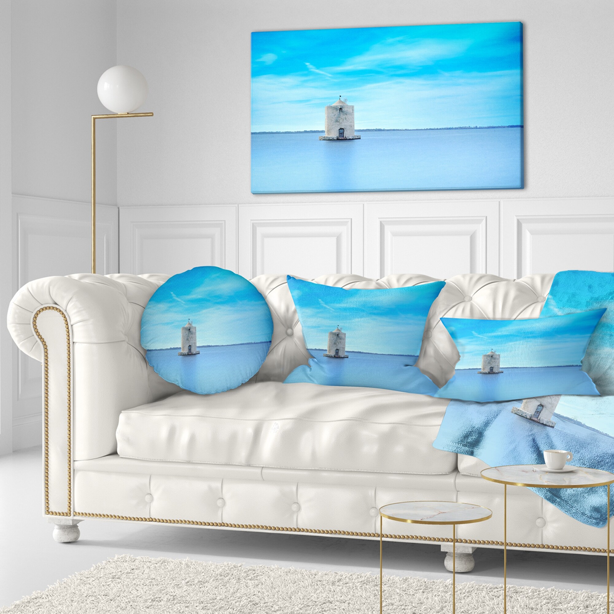 Designart "Old Spanish Windmill in Blue Lagoon" Extra Large Seashore Canvas Art