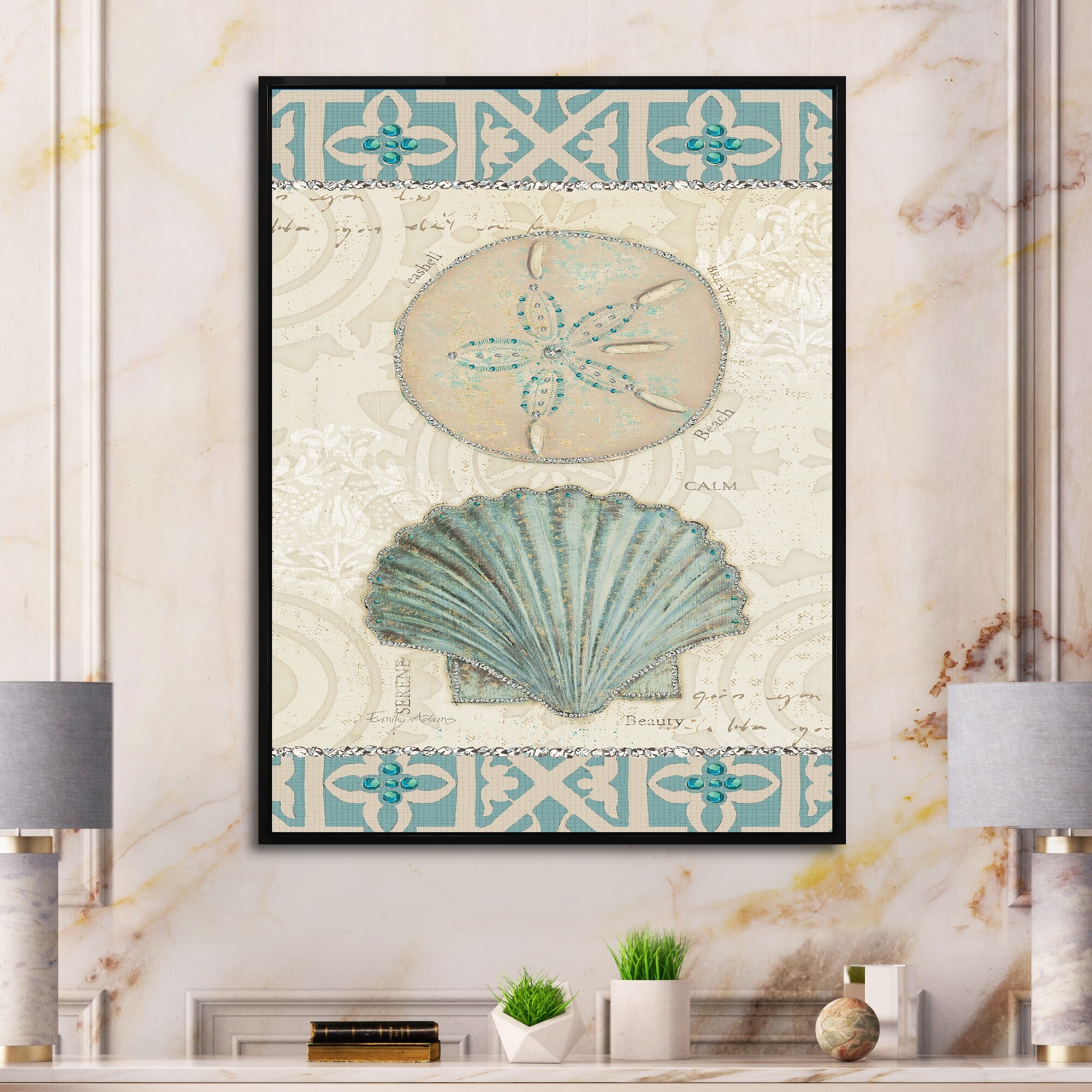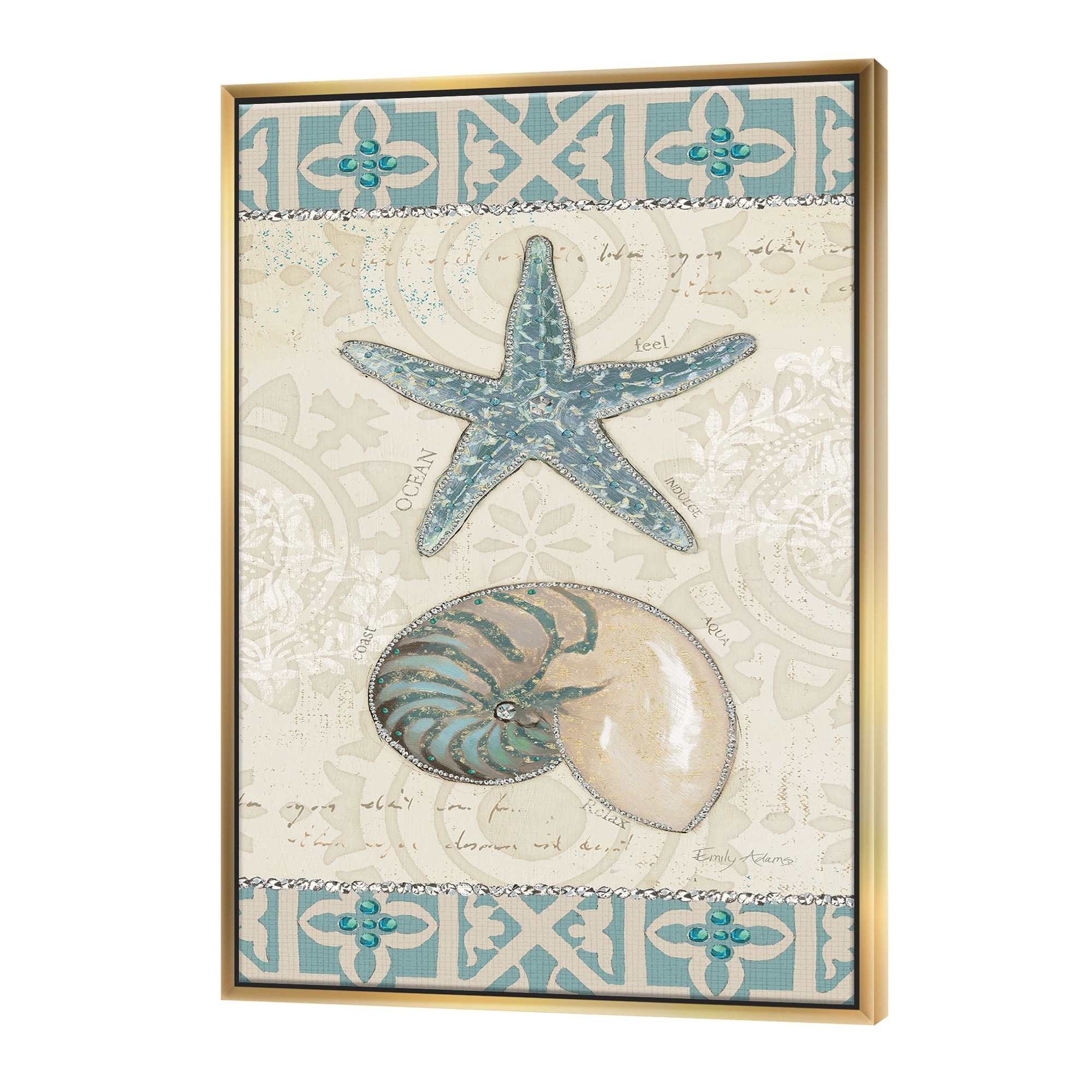 Designart "Seastar and Blue Sea Shell II" Nautical & Coastal Framed Canvas