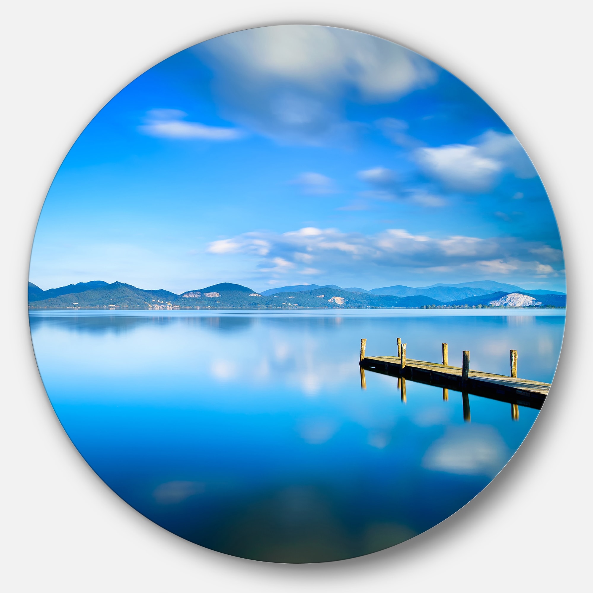 Designart 'Cloudy Sky Over Blue Sea' Seascape Photo Circle Wall Art
