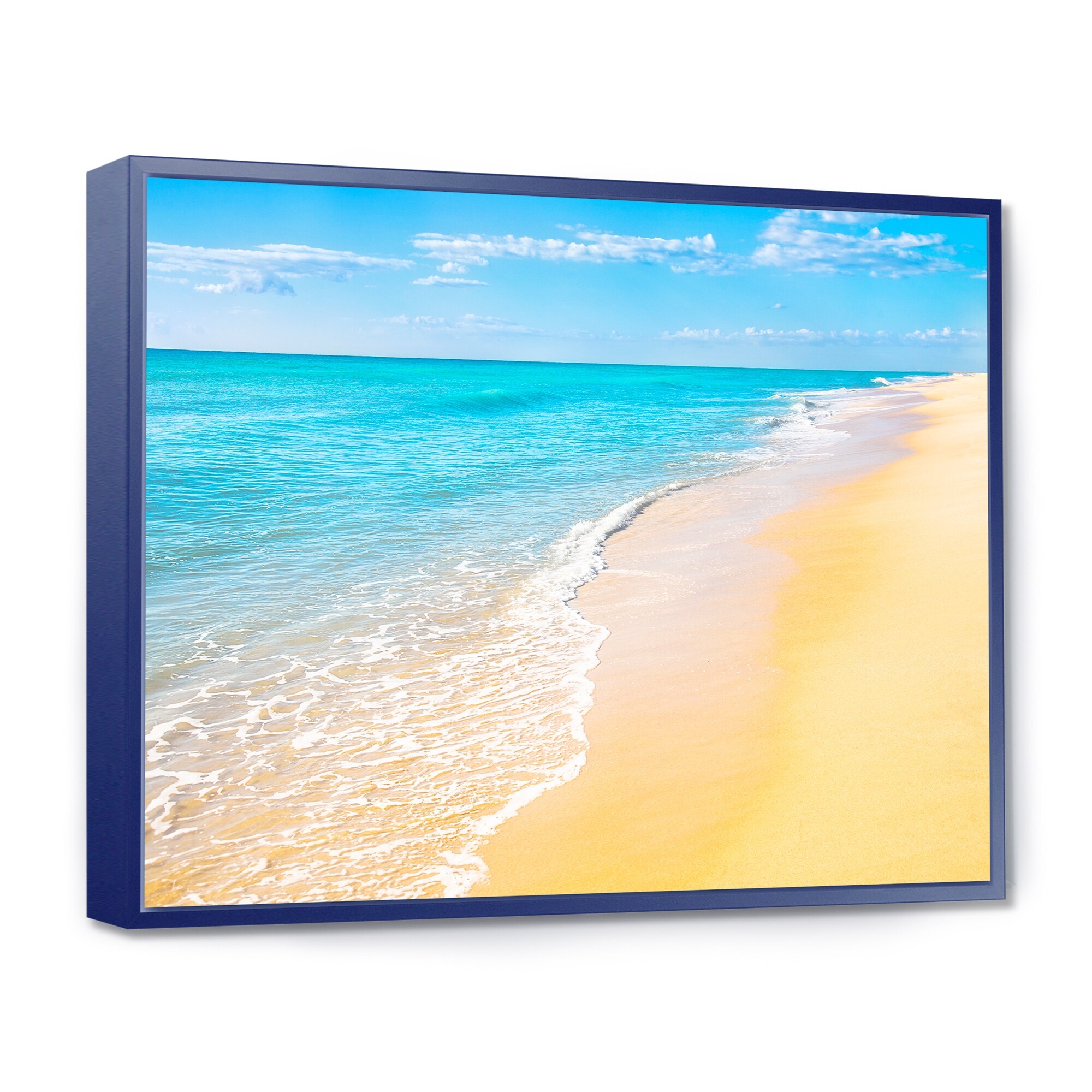 Designart "Blue Sea and Sky with Sandy Beach" Sea & Shore Canvas Wall Art Print