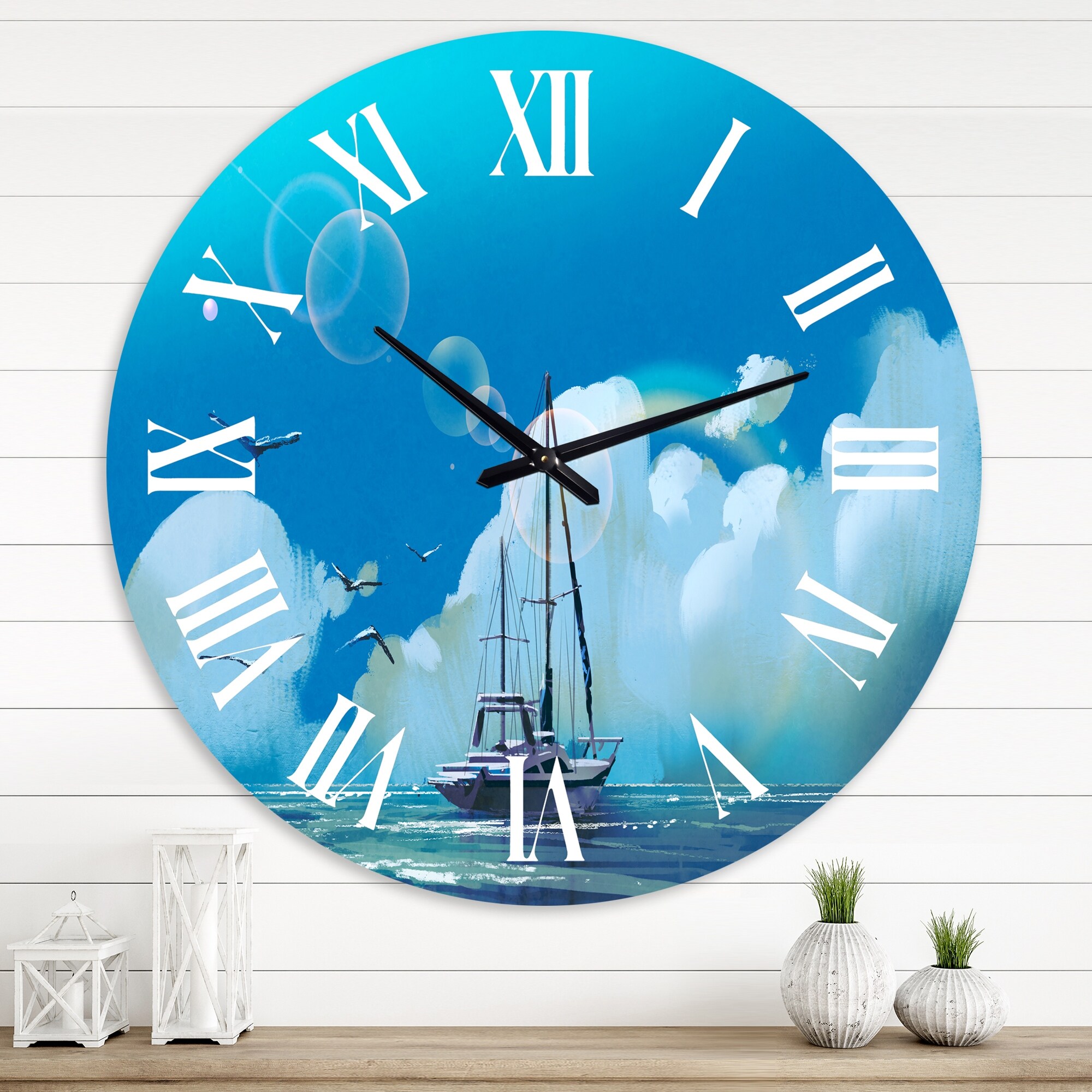 Designart 'The Sailboat on the Blue Sea Against Summer Sky' Nautical & Coastal wall clock