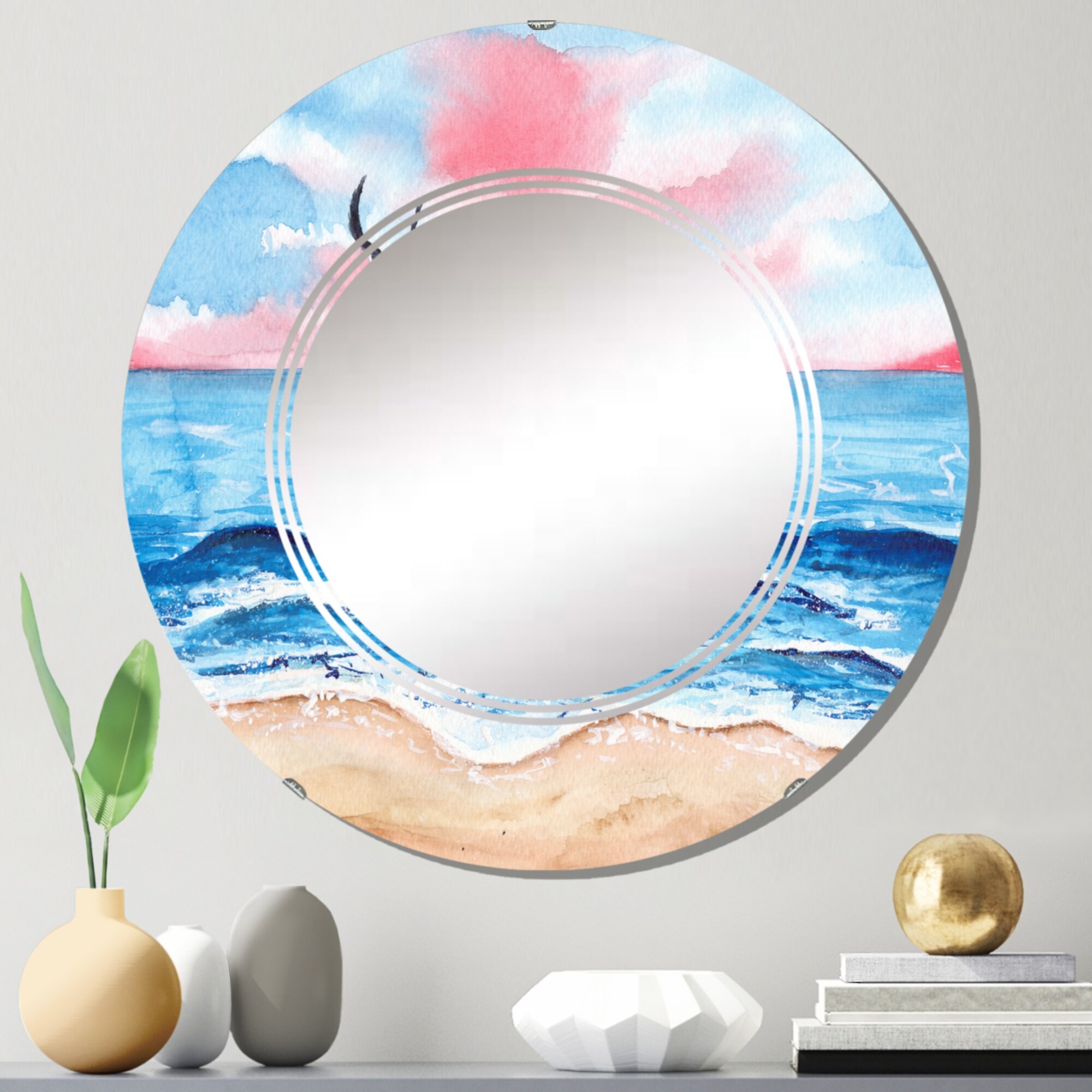 Designart 'A Small Sailboat on the Blue Sea With Foamy Waves' Nautical & Coastal Printed Wall Mirror