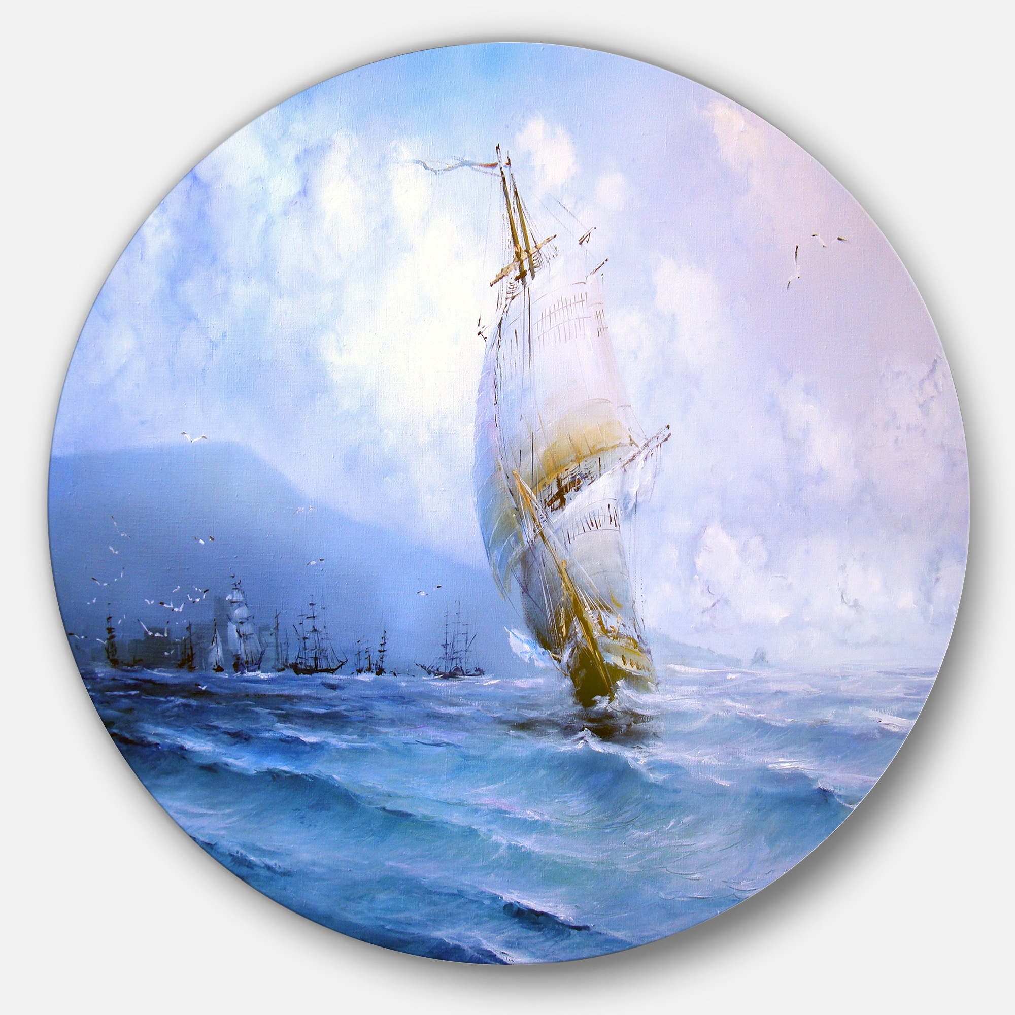 Designart 'Vessel in Blue Sea' Seascape Circle Wall Art