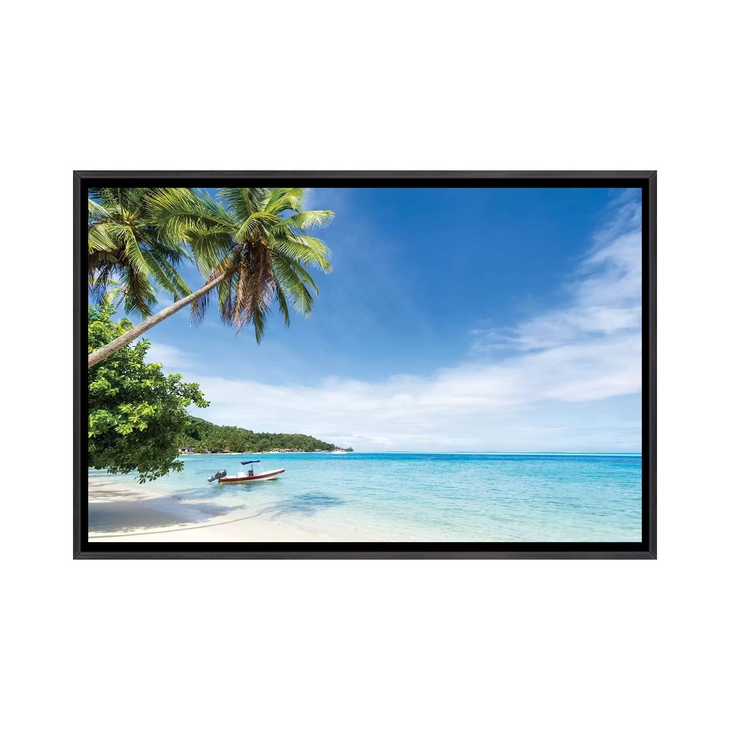iCanvas "Idyllic Beach With Palm Trees And Boat on Bora Bora" by Jan Becke Framed