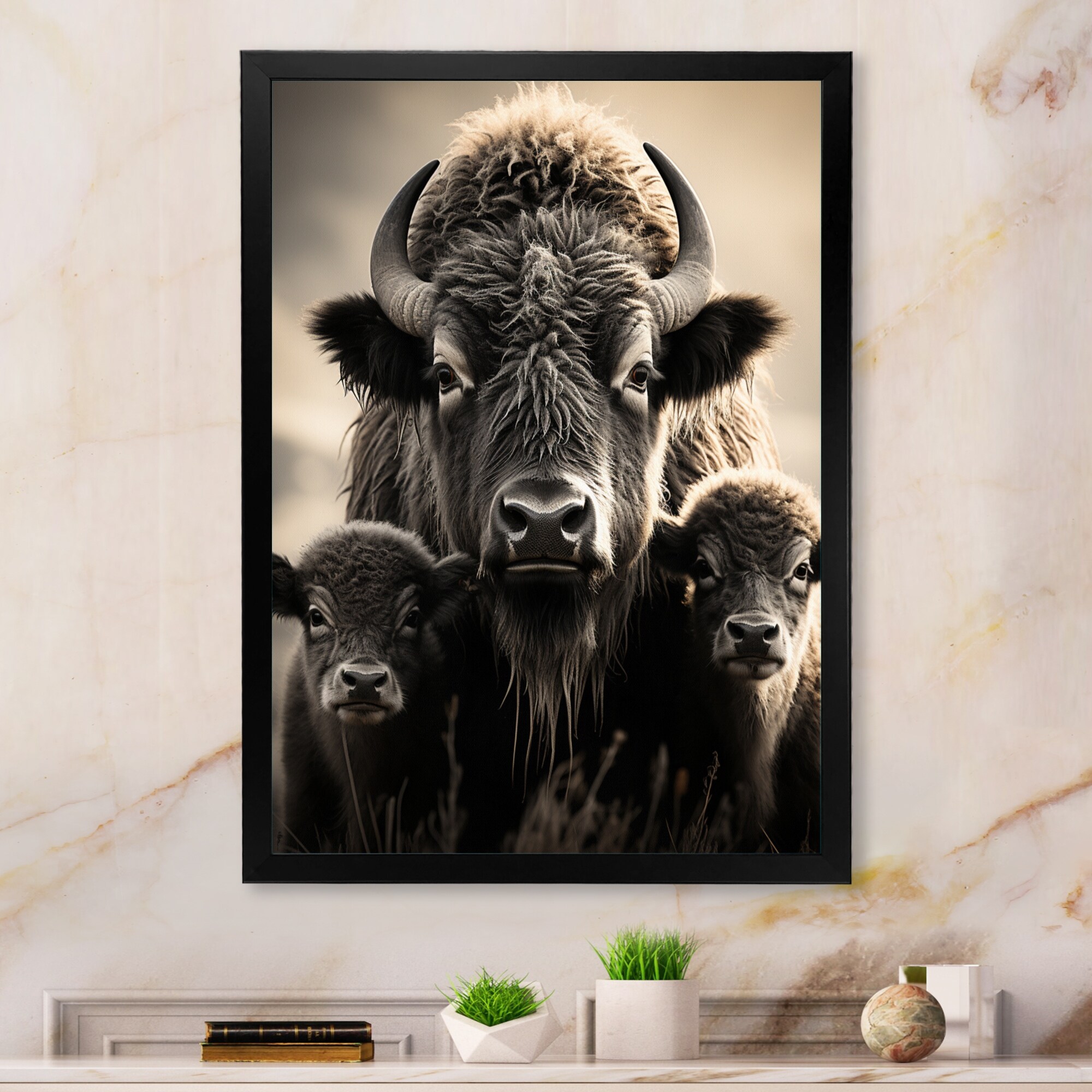 Designart "Bison Bison Family Bond" Animals Bison Framed Canvas Wall Art