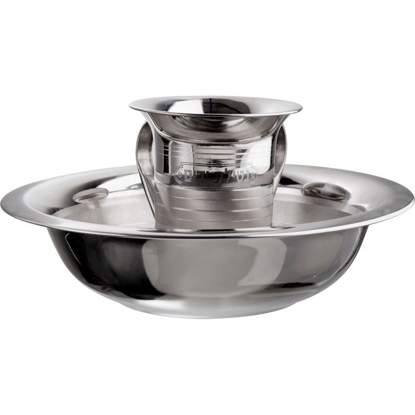 Mayim Achronim Stainless Steel Bowl(8973) 2.75" H 7.5" W Cup 4" H 2 1/2" - Bowl 2.75" H 7.5" W Cup 4" H 2 1/2"