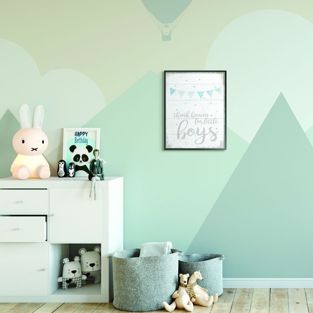 The Kids Room by Stupell Thank Heaven Boys Blue Kids Word Design Black Framed Wall Art, Design By Artist Daphne Polselli
