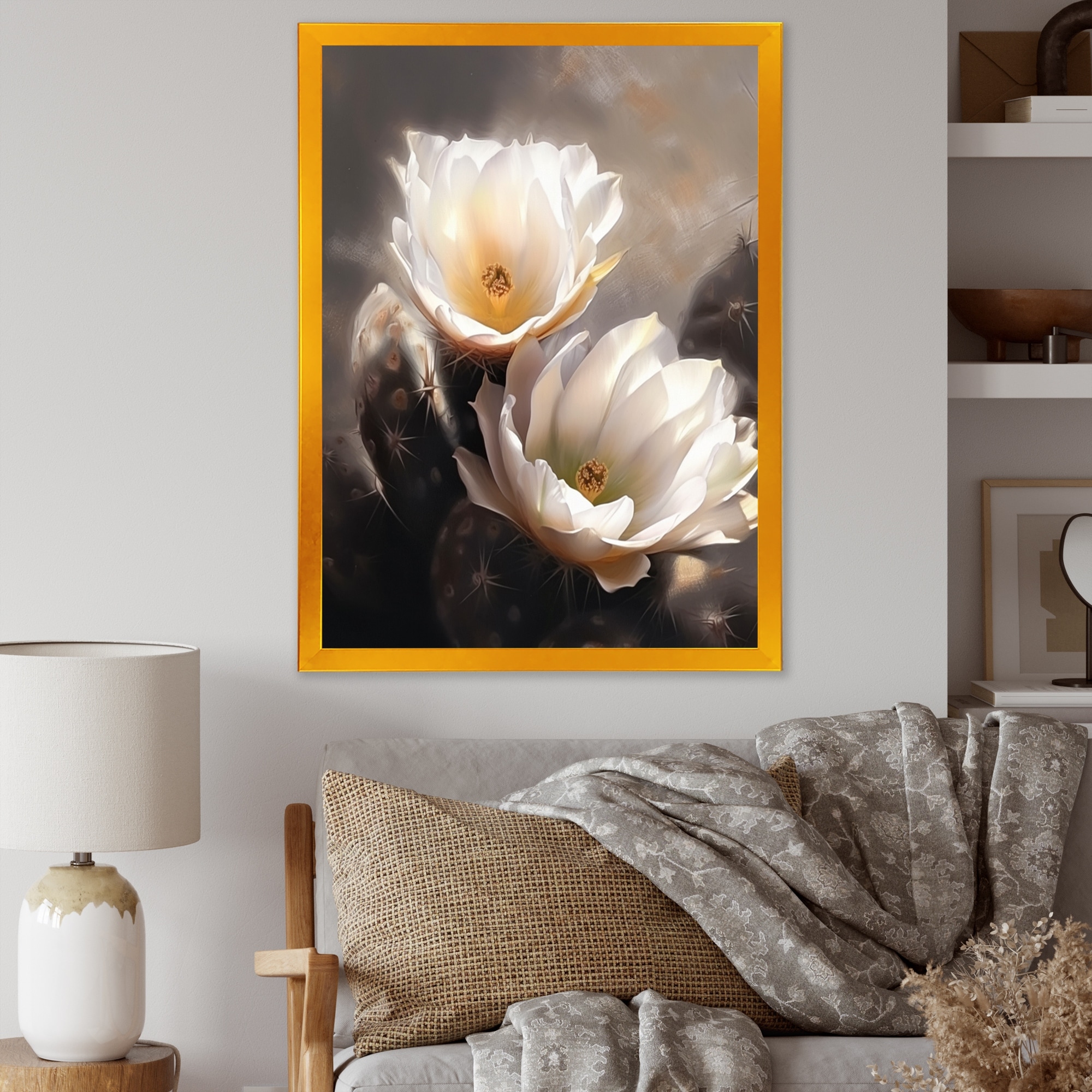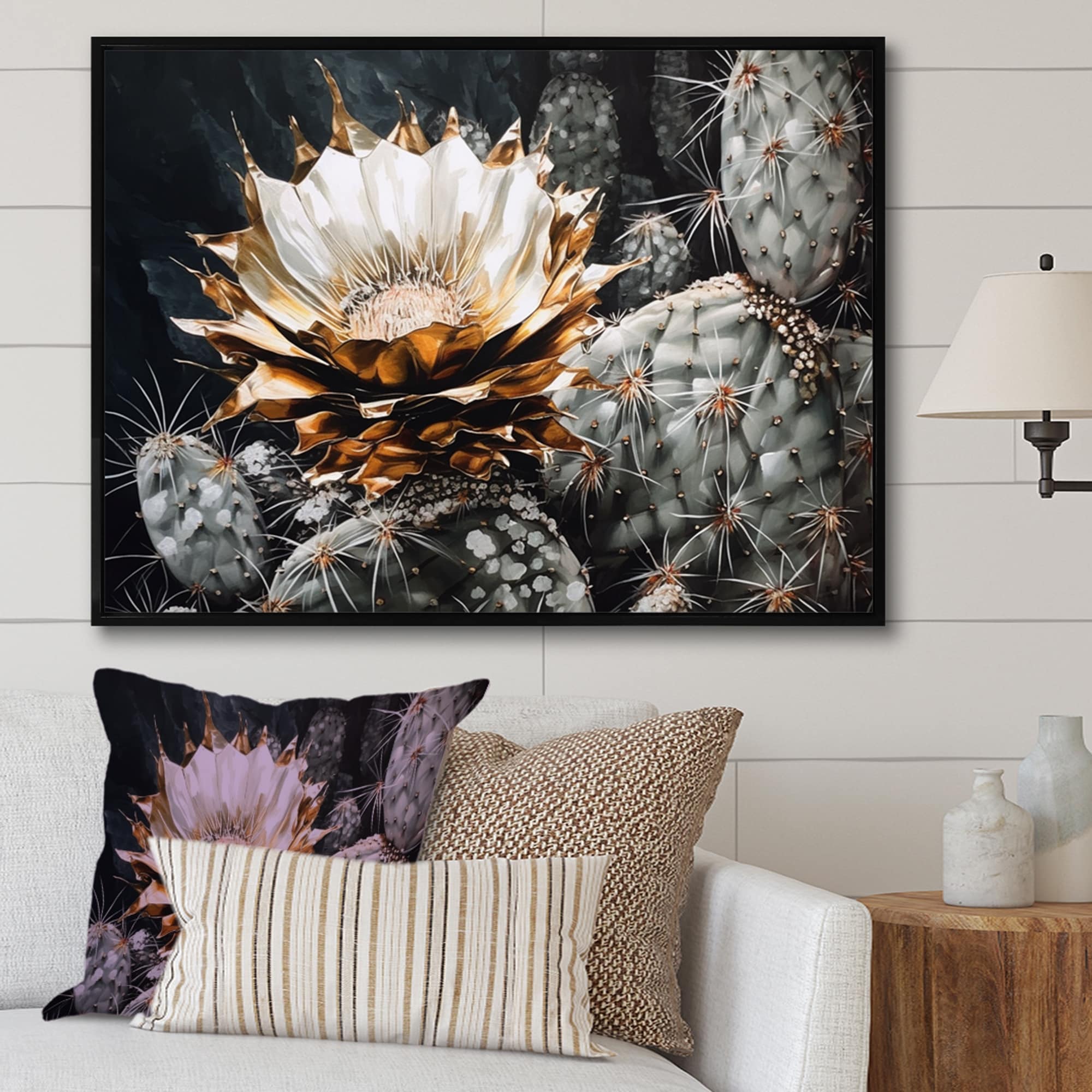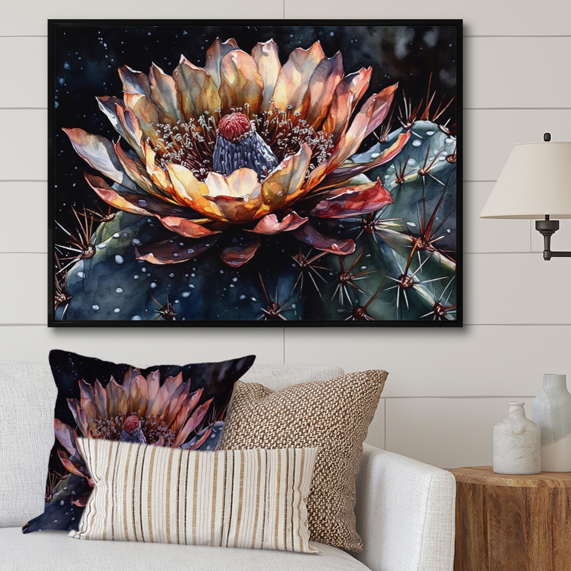 Designart "Cream Desert Cactus" Floral Cactus Framed Canvas Print