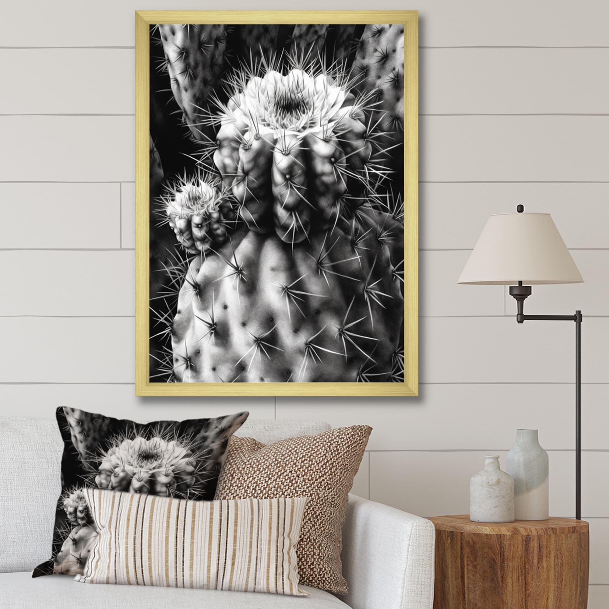 Designart "Grey Desert Cactus Ii" Floral Cactus Framed Canvas Print
