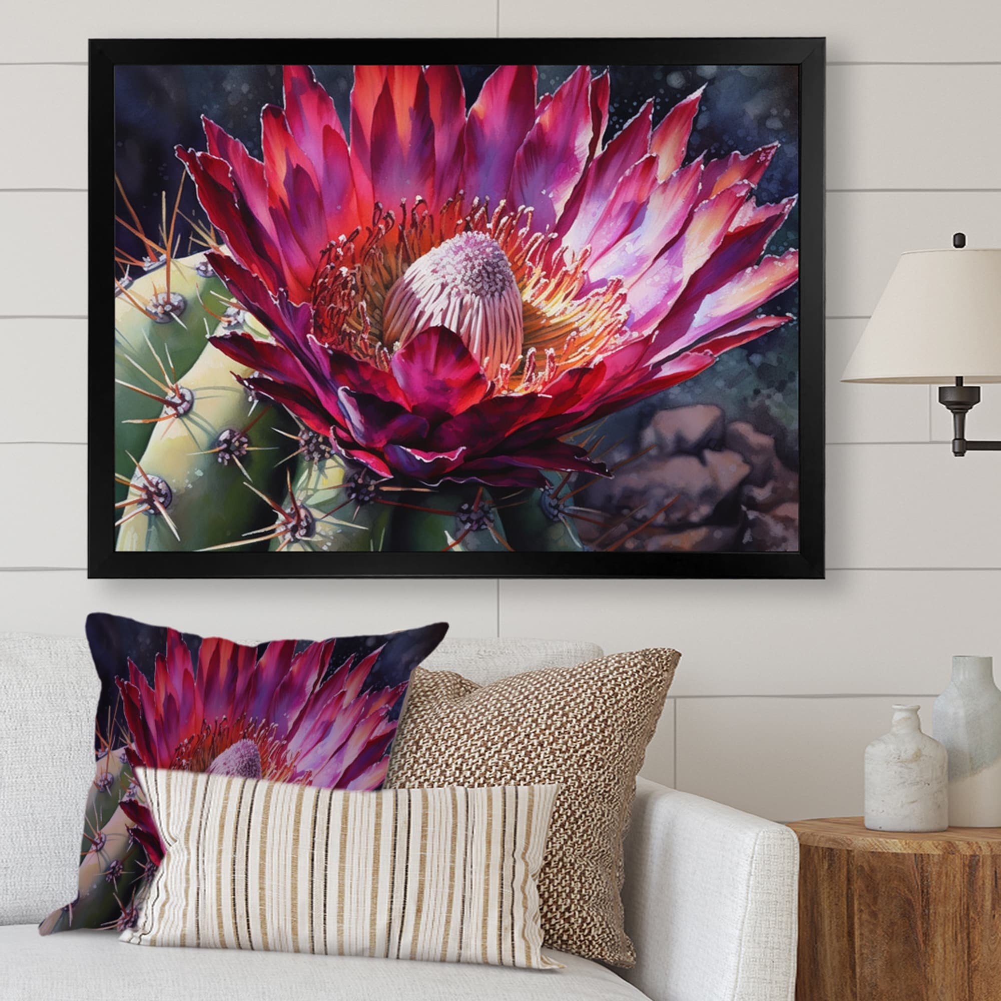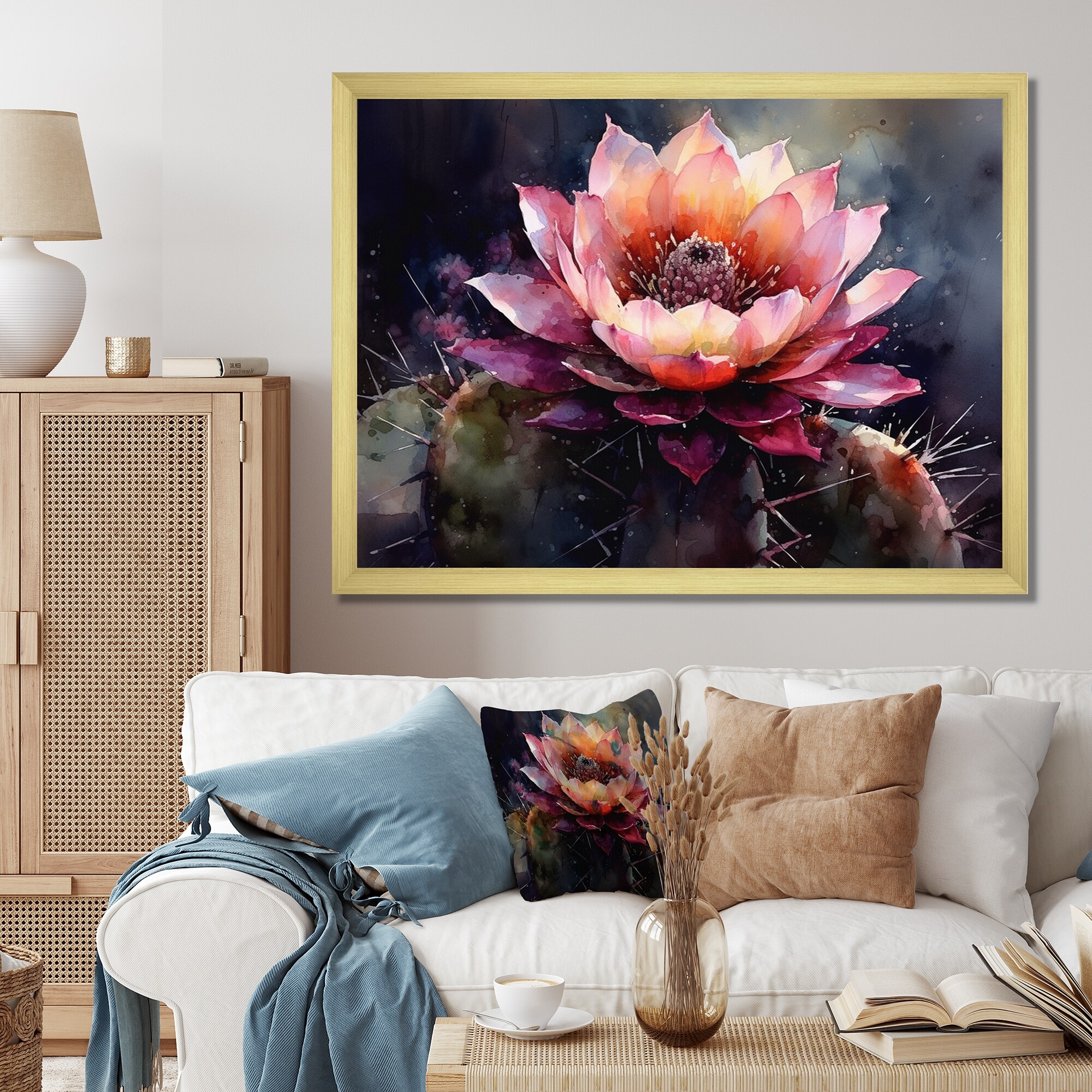 Designart "Pink Green Cactus Flower" Floral Cactus Framed Canvas Art Print