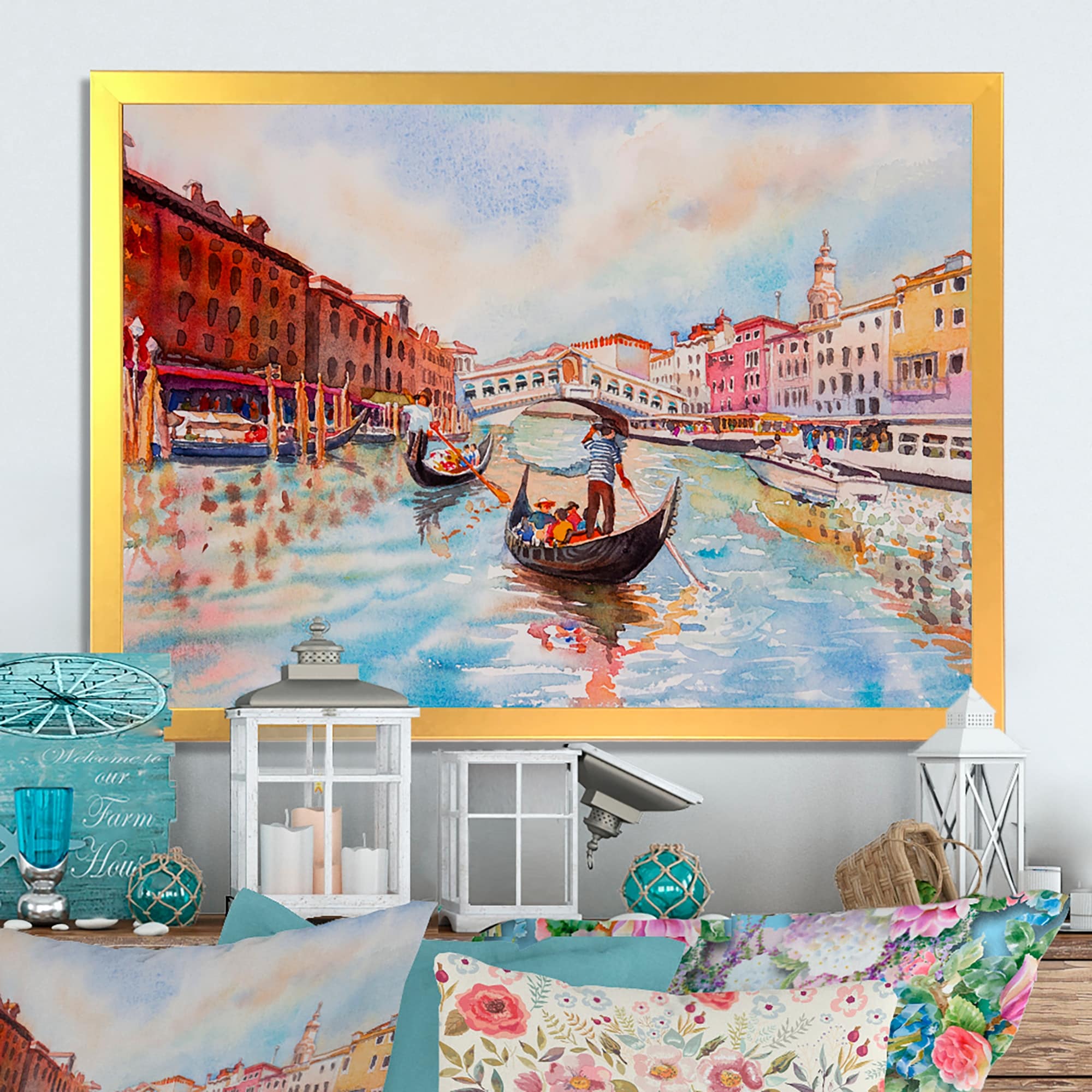 Designart "The Venetian Canal With A Floating Gondola I" French Country Framed Art Print