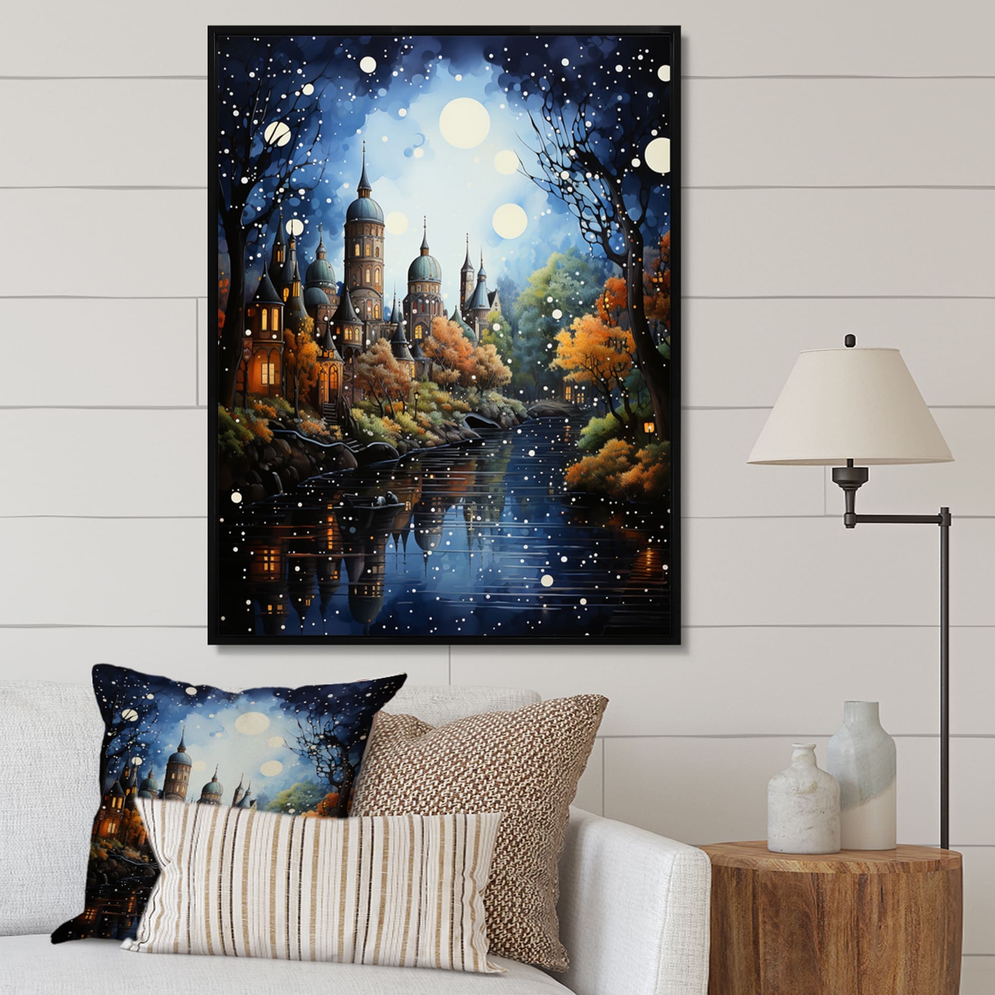 Designart "Blue Canal Surreal Waterways Pointillism I" Canals Framed Canvas Wall Art