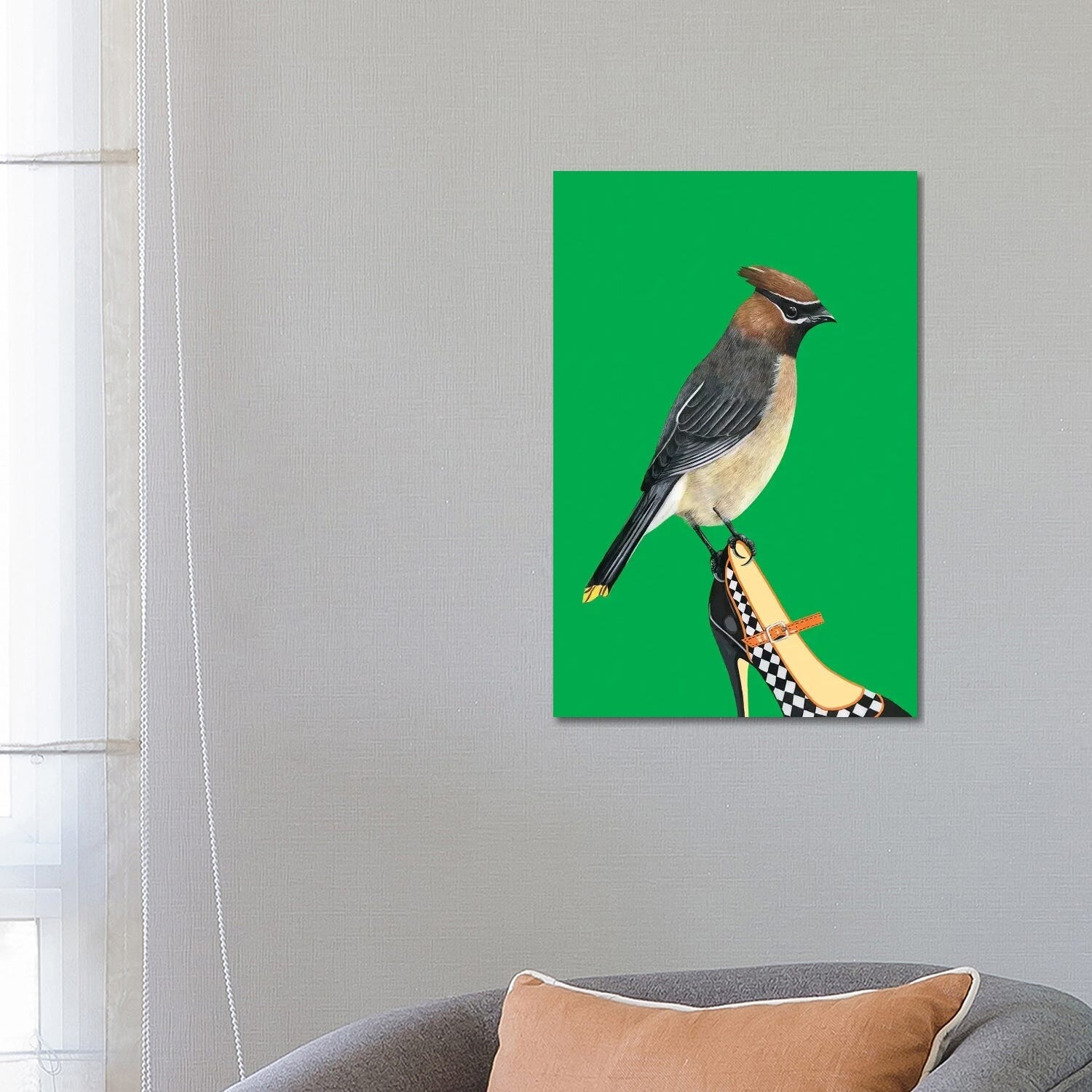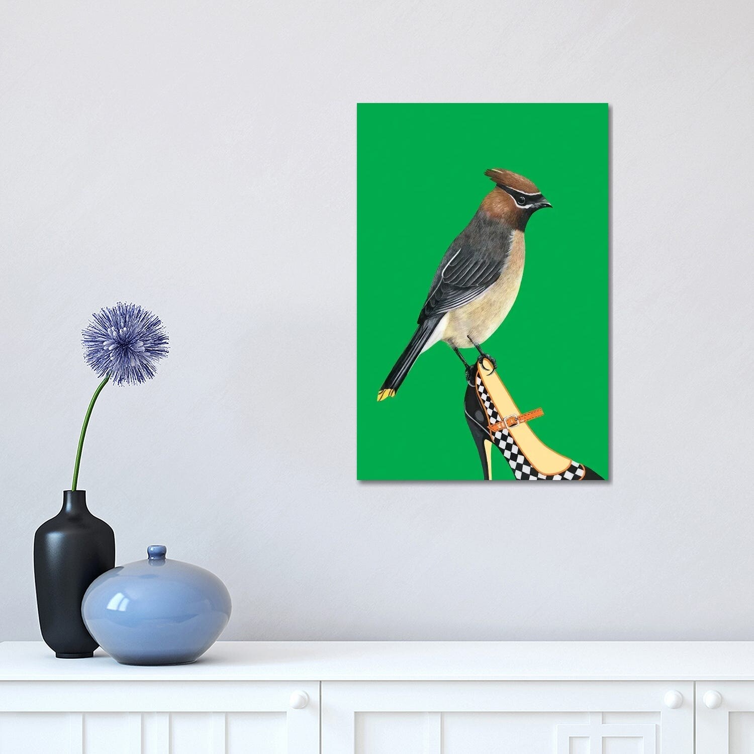 iCanvas "Cedar Waxwing Bird on Shoe" by Jackie Besteman Canvas Print