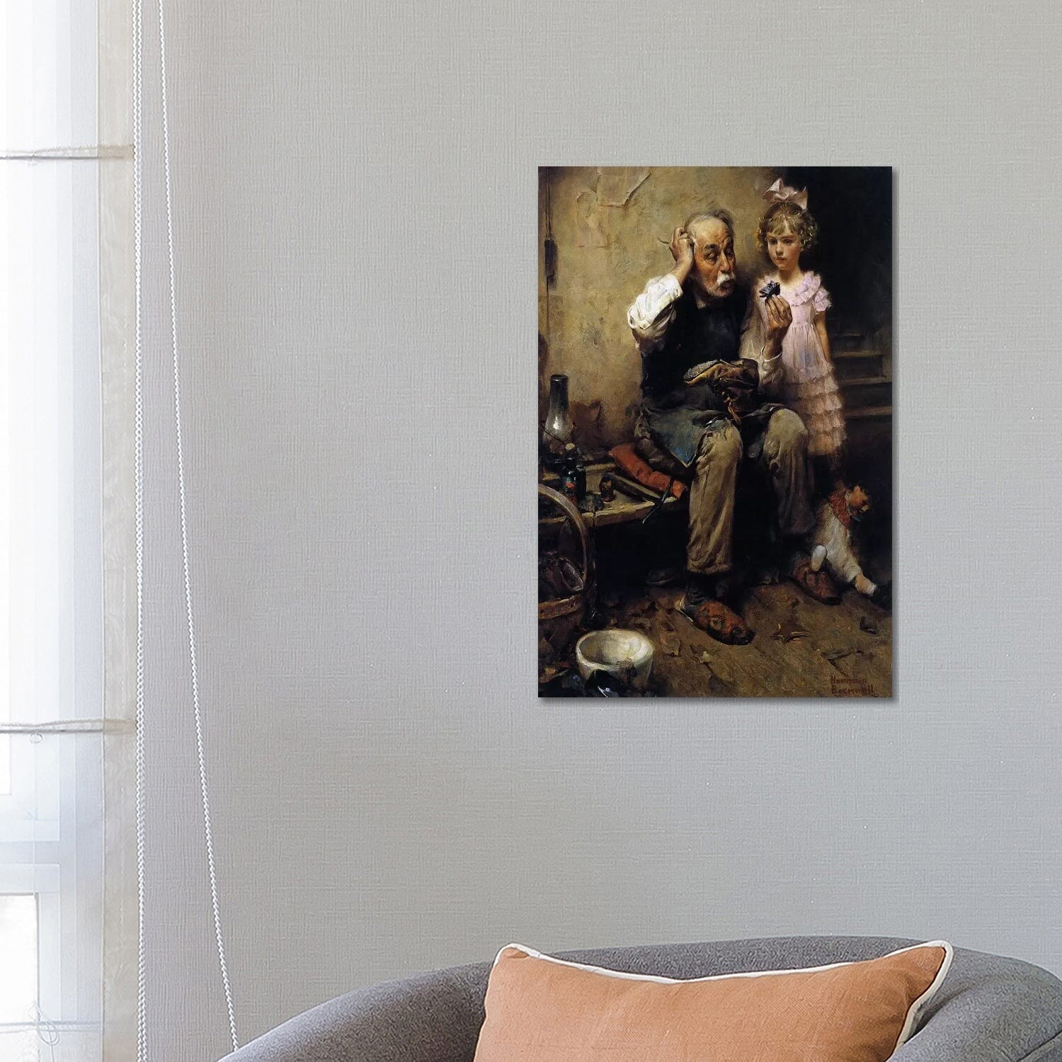 iCanvas "Cobbler Studying Doll's Shoe" by Norman Rockwell Canvas Print