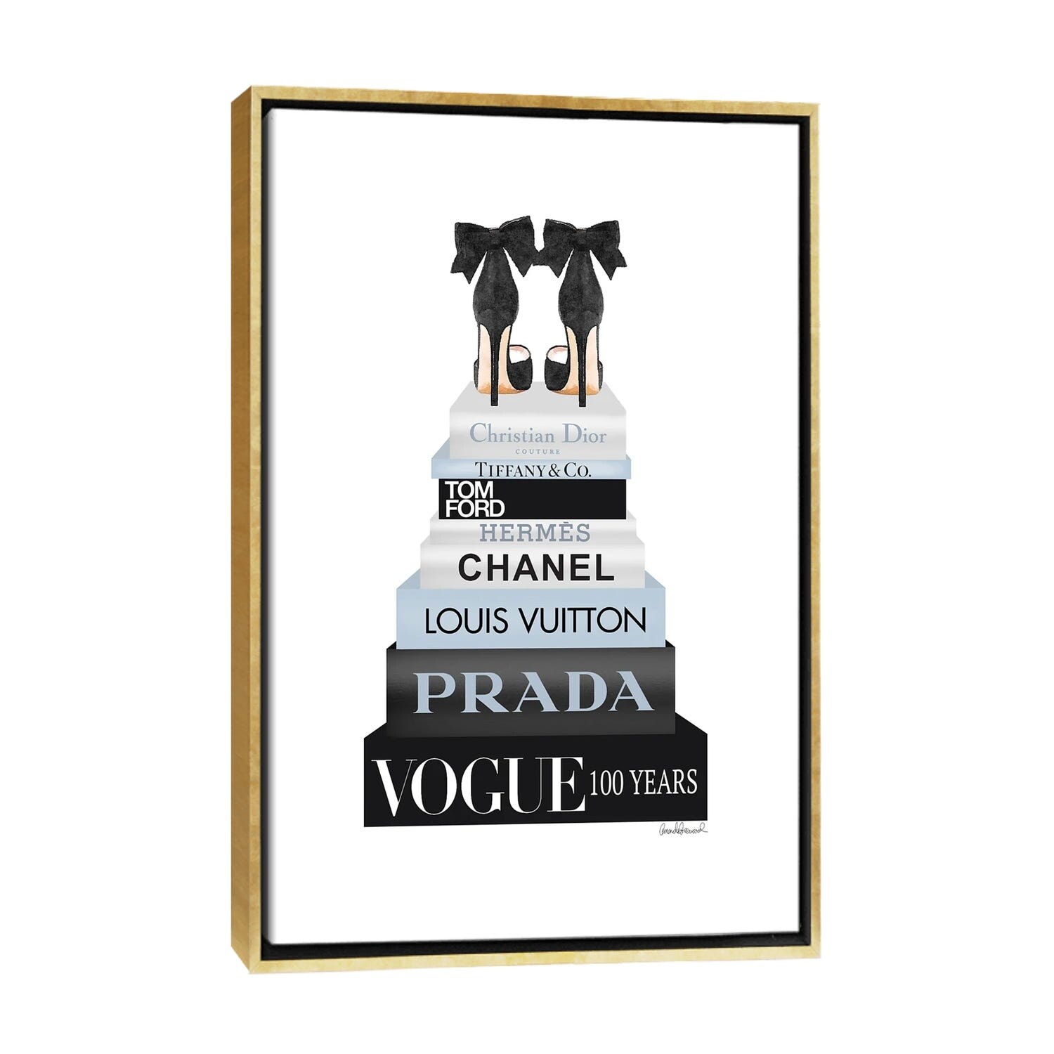 iCanvas "Tall Book Stack in Black & Pale Blue With Shoes" by Amanda Greenwood Framed Canvas Print