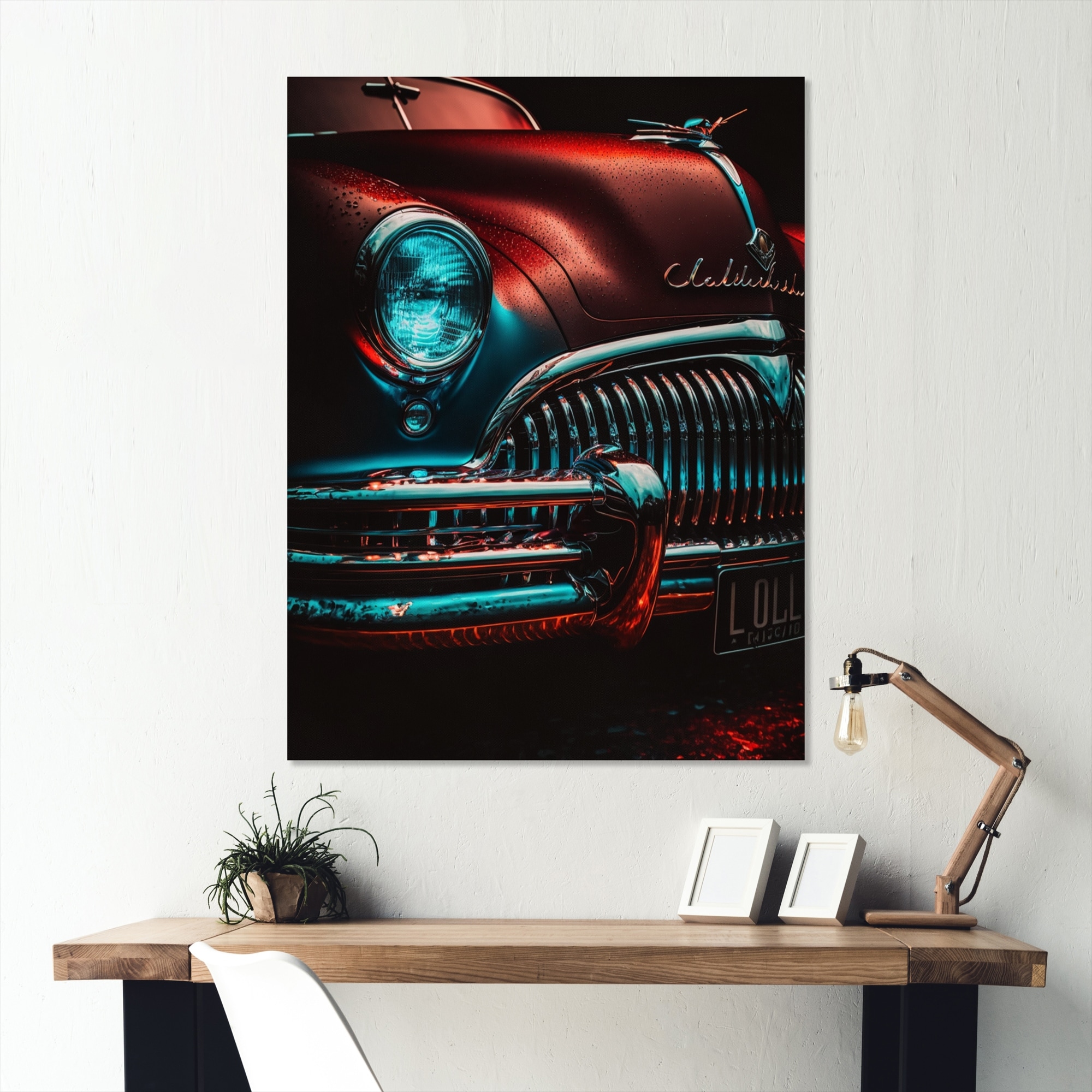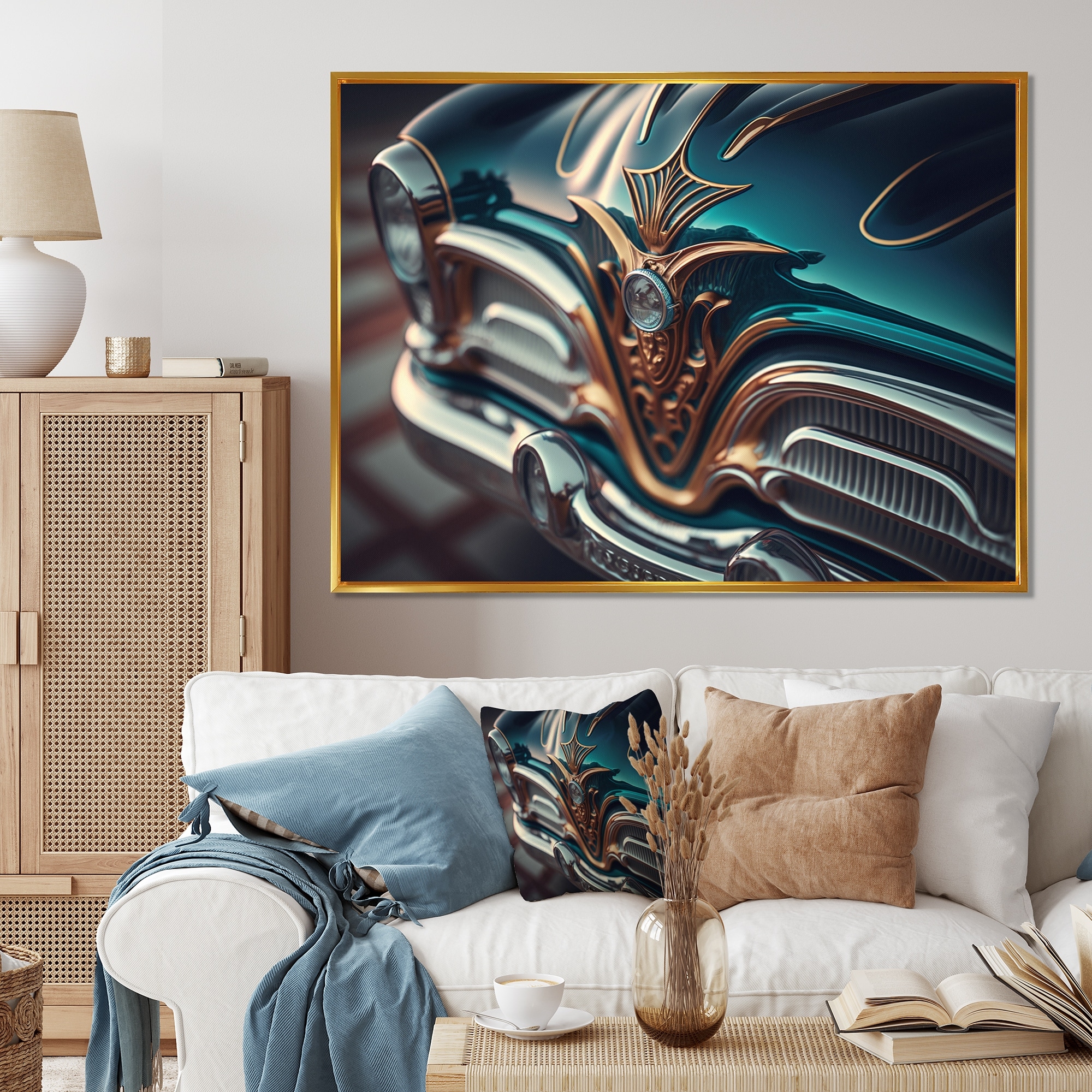 Designart "Close-up Of Classic Retro Car V" Retro Car Framed Canvas Wall Art Print