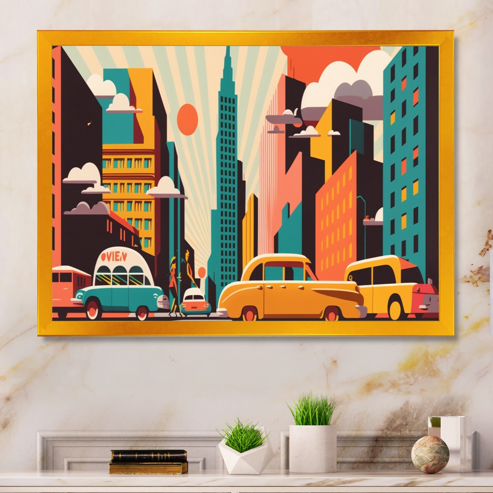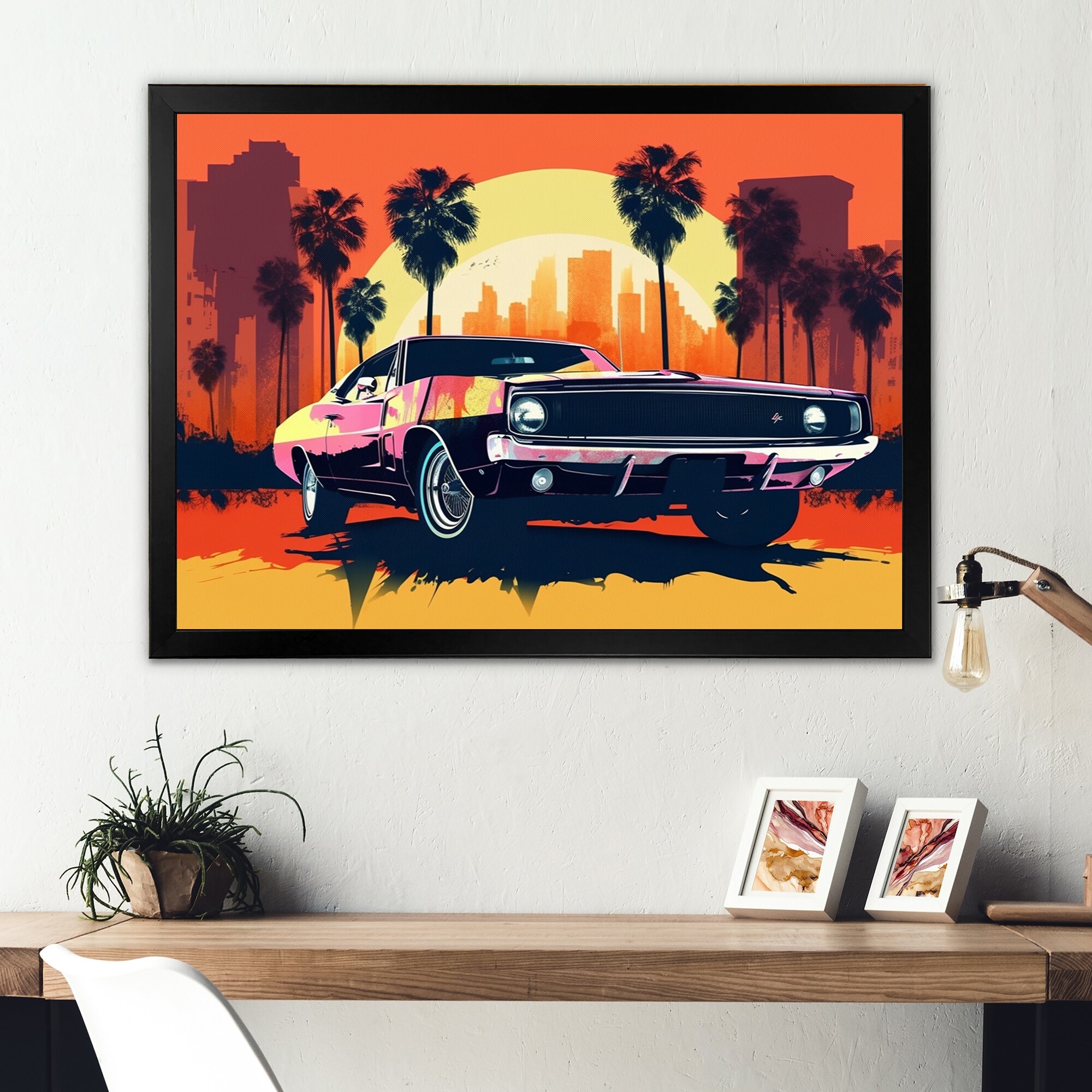 Designart "80S Groovy Cars Iv" Retro Car Framed Canvas Art Print