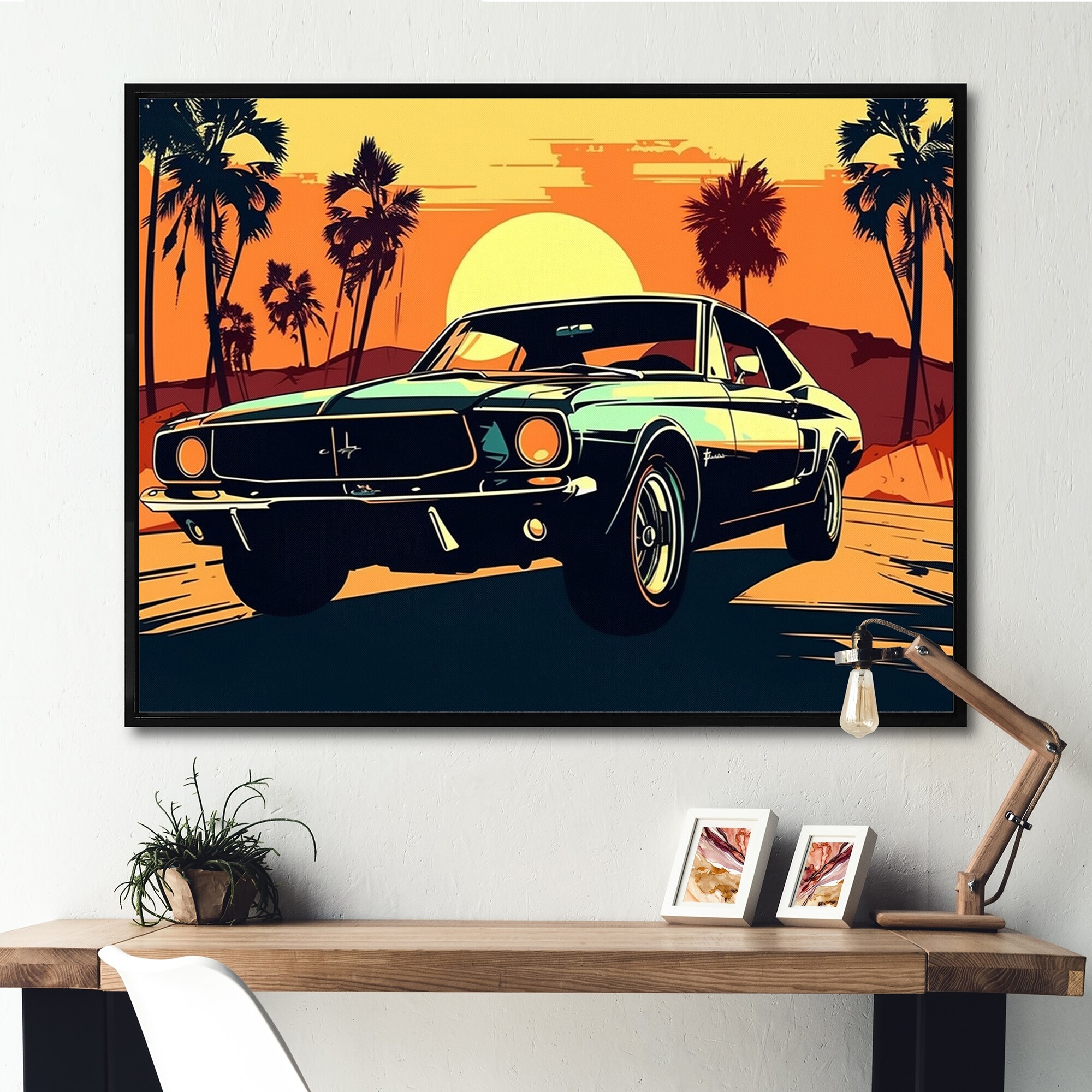 Designart "Vintage Retro Car During Golden Hour VI" Retro Car Framed Canvas Wall Art Print