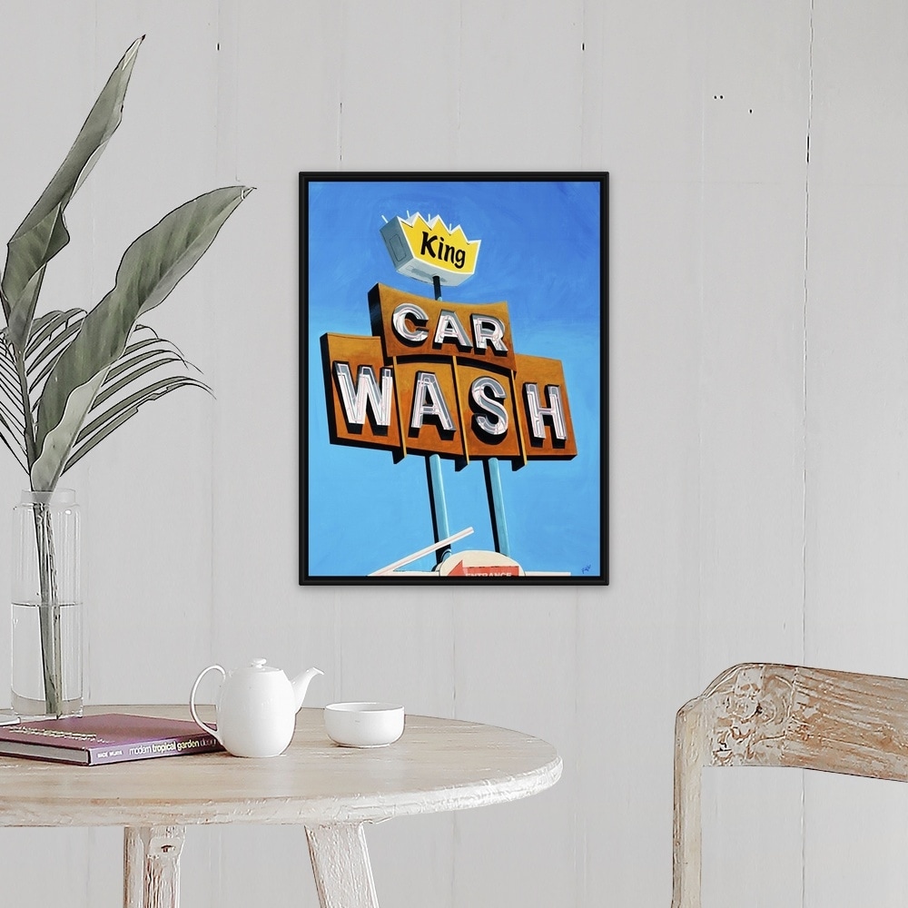 "King Car Wash" Black Float Frame Canvas Art