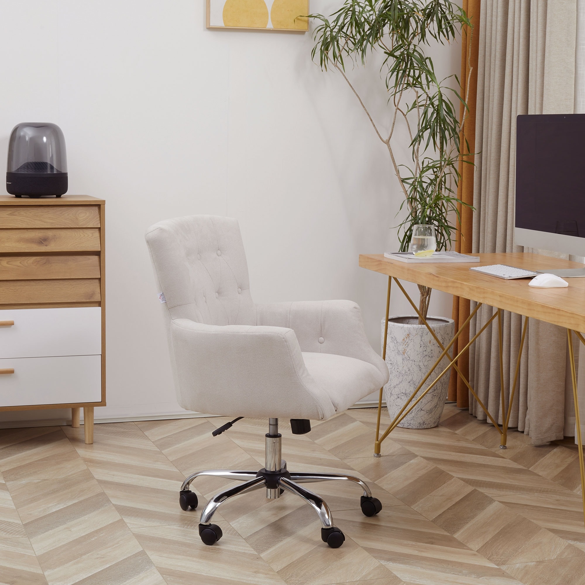 HOMCOM Swivel Computer Office Chair Button Tufted Mid Back Desk Chair for Home Study Bedroom, Carbon
