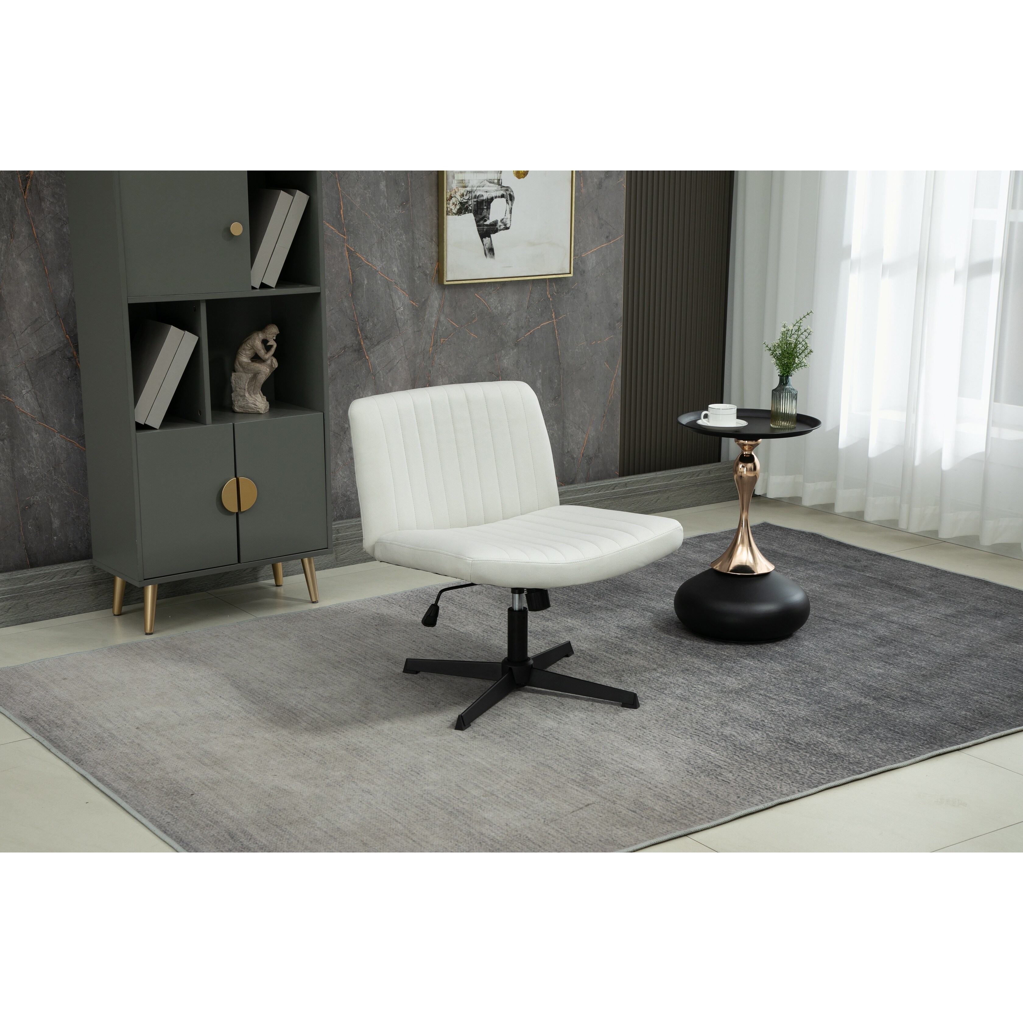 BOSSIN Armless Office Desk Chair No Wheels,PU Leather Padded Modern Swivel Vanity Chair