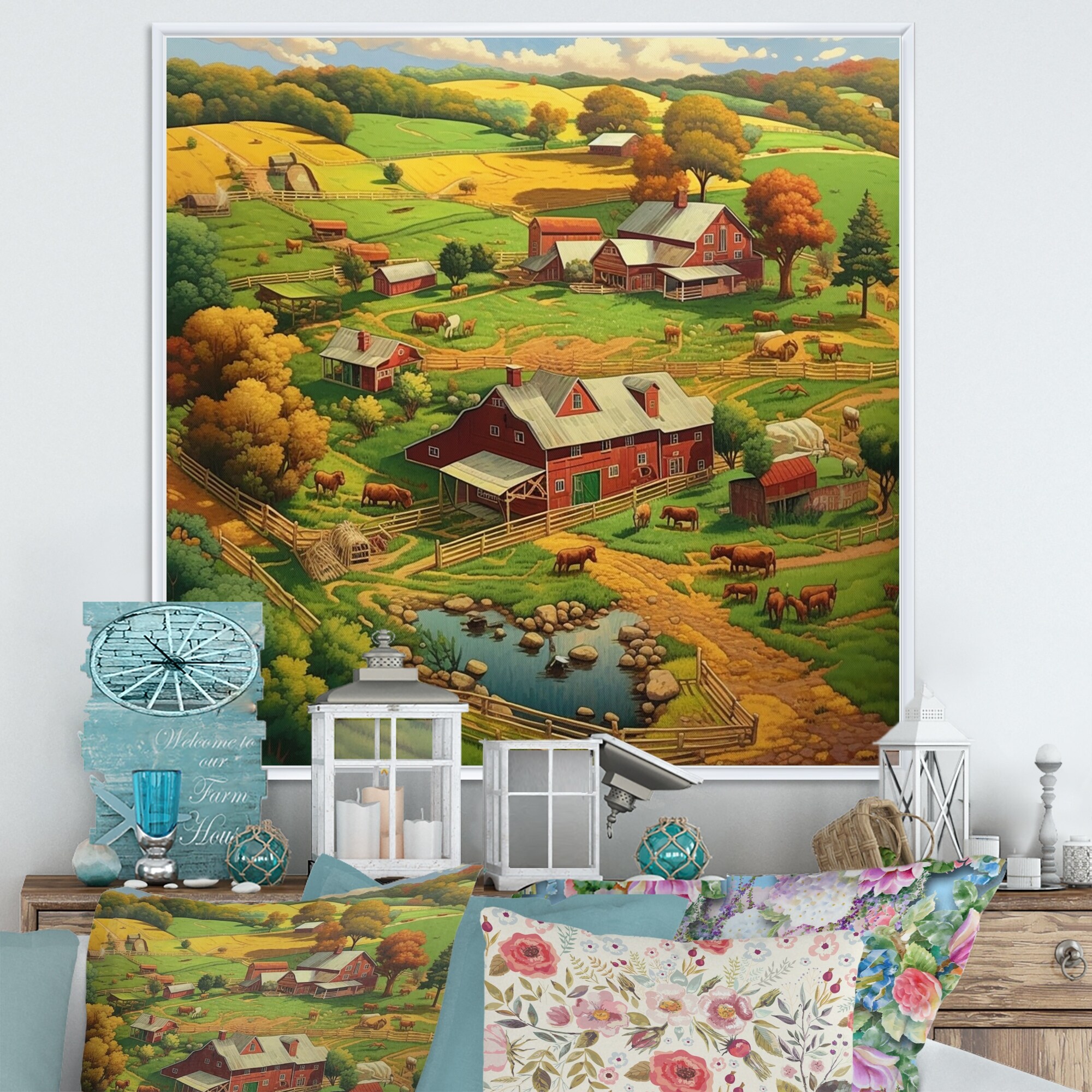 Designart "Farmstead Charm" Farm Framed Canvas Wall Art