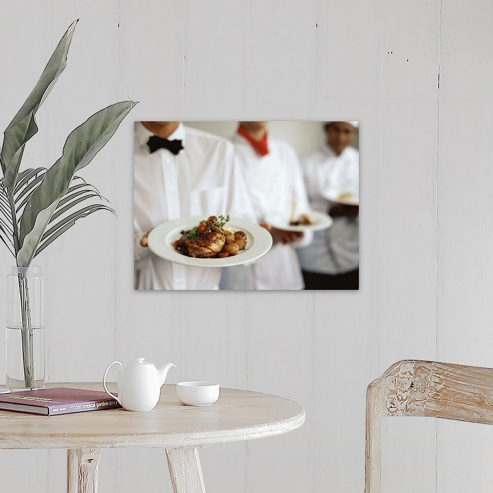 "Two chefs and a waiter standing in a row" Canvas Wall Art