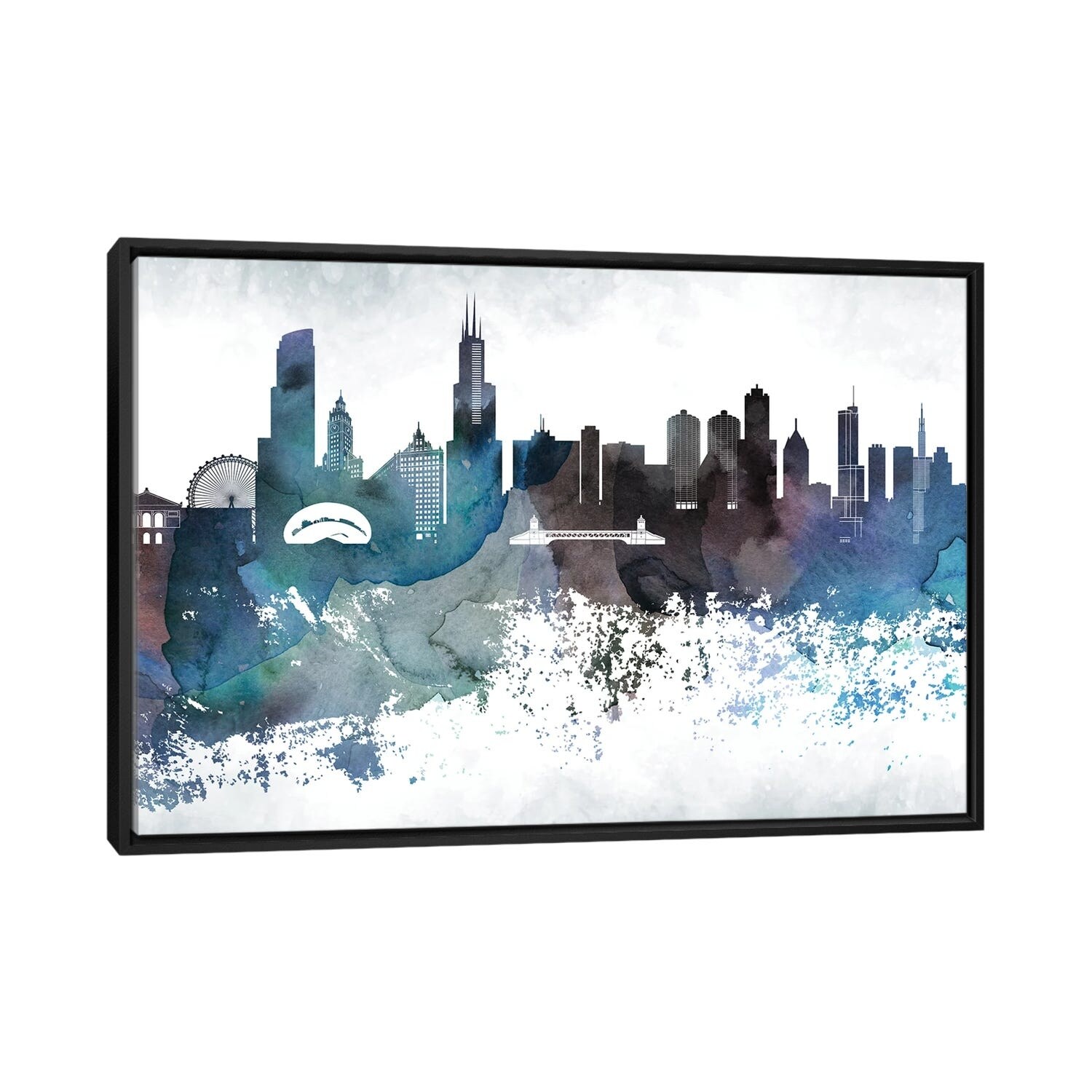 iCanvas "Chicago Bluish Skylines" by WallDecorAddict Framed Canvas Print