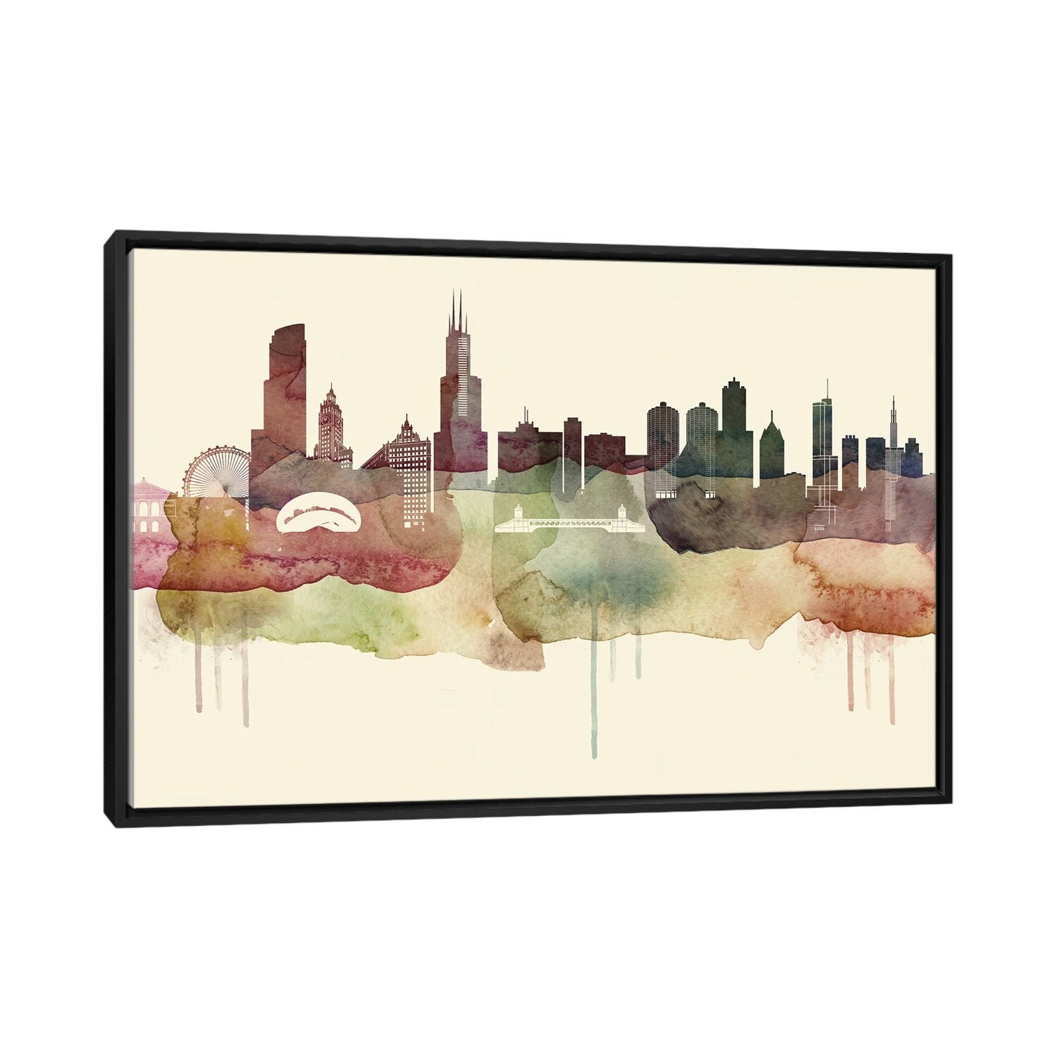 iCanvas "Chicago Pastel Skylines" by WallDecorAddict Framed Canvas Print