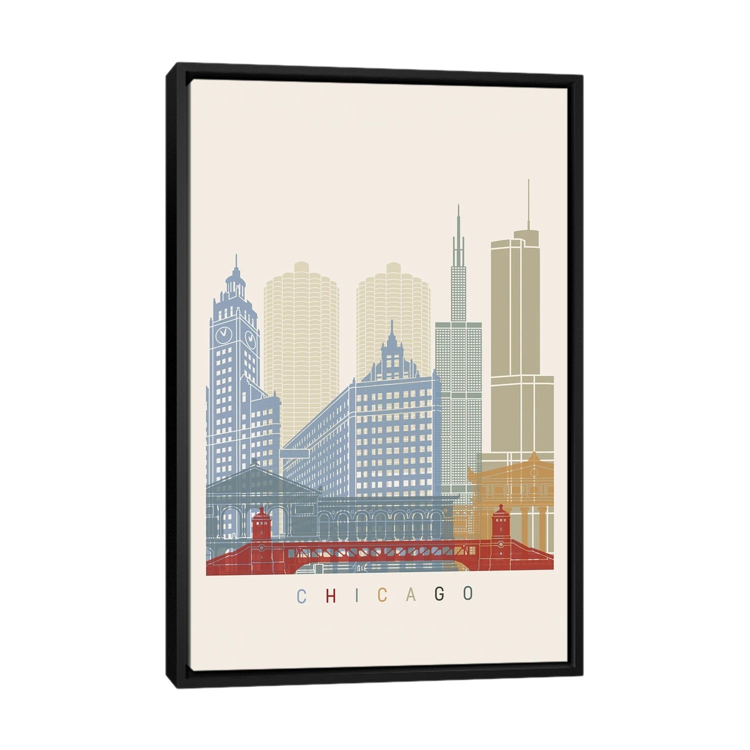 iCanvas "Chicago Skyline Poster" by Paul Rommer Framed Canvas Print