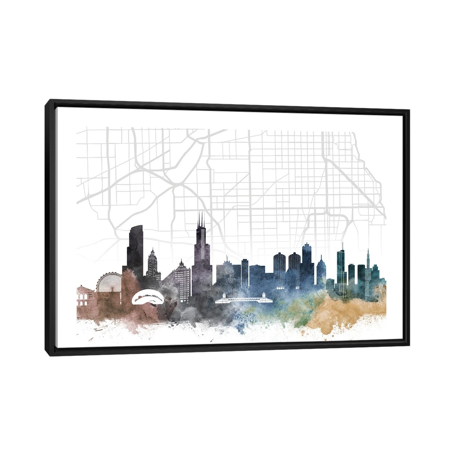 iCanvas "Chicago Skyline City Map" by WallDecorAddict Framed Canvas Print