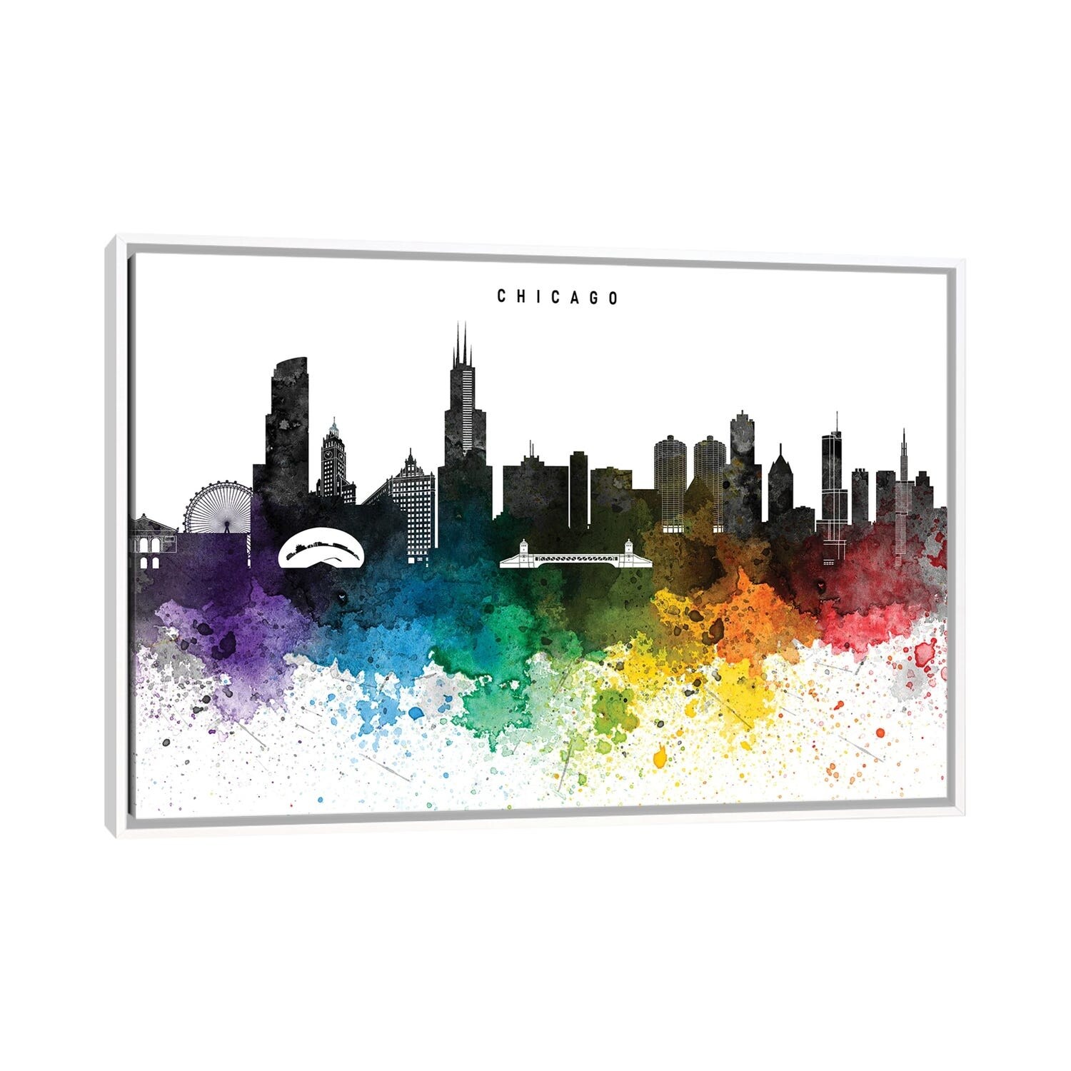 iCanvas "Chicago Skyline Rainbow Style" by WallDecorAddict Framed Canvas Print