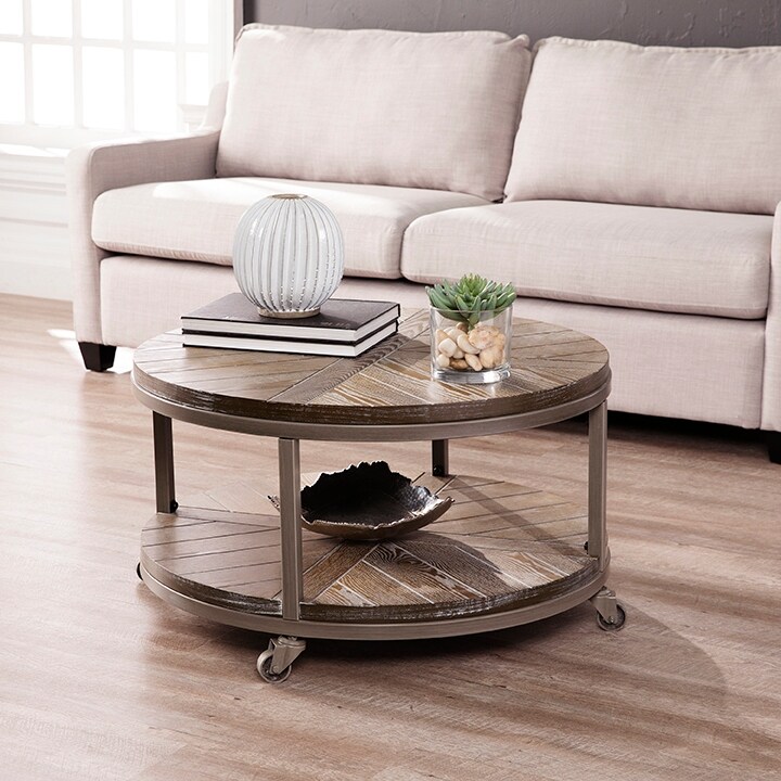 Two-tone Retro Cocktail Table Coffee Table Easy Assembly Movable with Caster Wheels for Livingroom