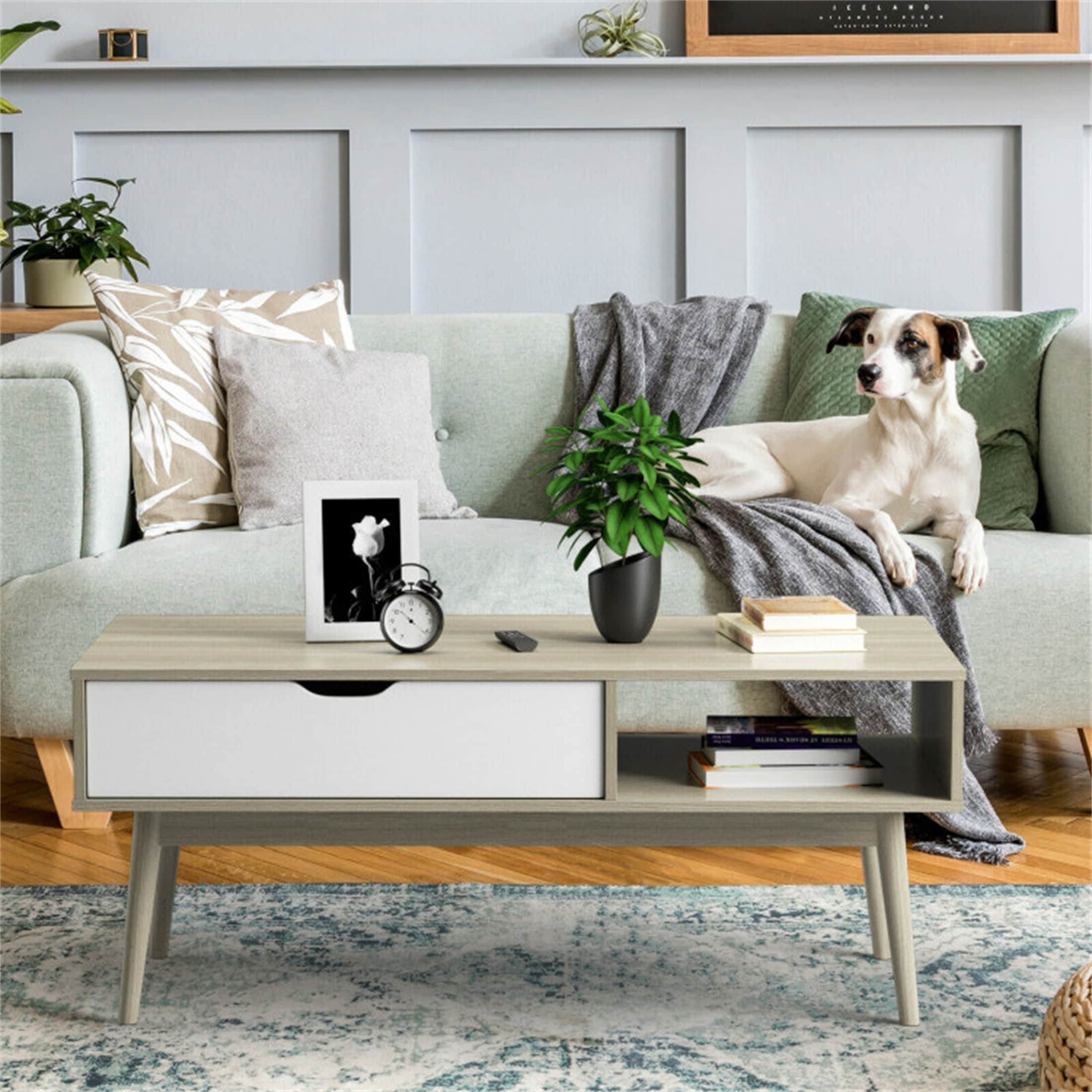 Coffee Cocktail Accent Table with Drawer and Storage Shelf