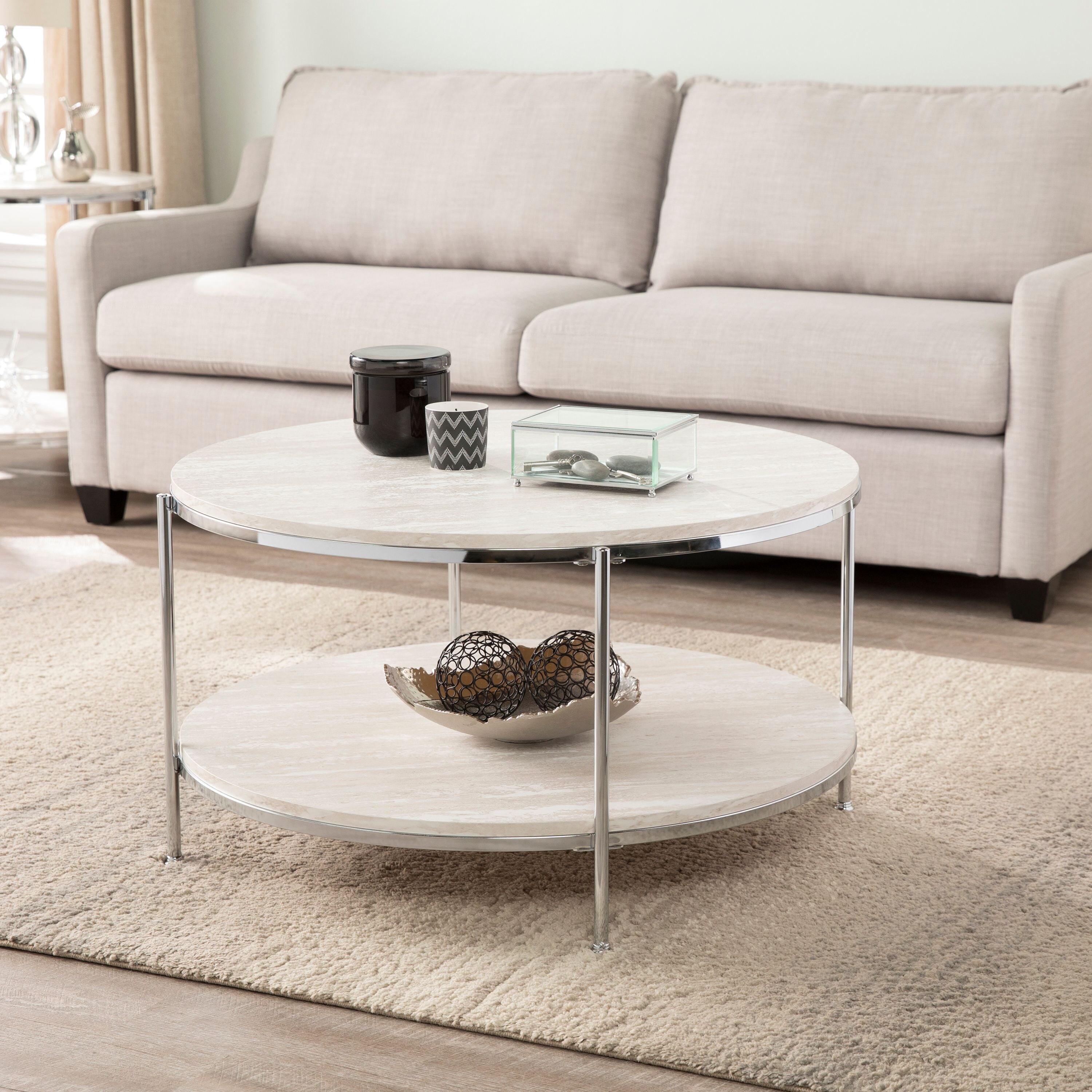 Solstone Round Faux Stone Cocktail Table, Chrome