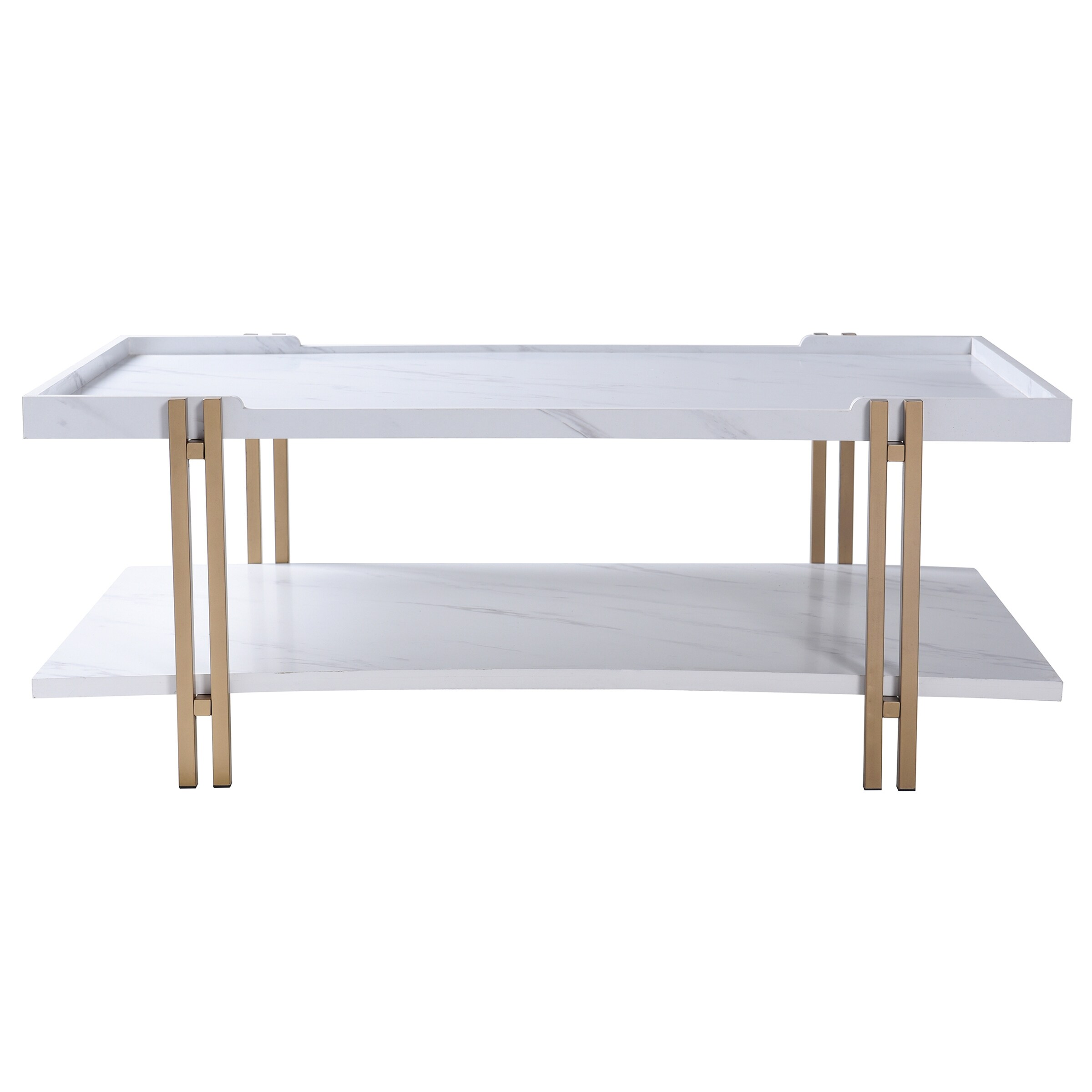High Gloss 2-layer Cocktail Coffee Table with Metal Frame and Marble Finish