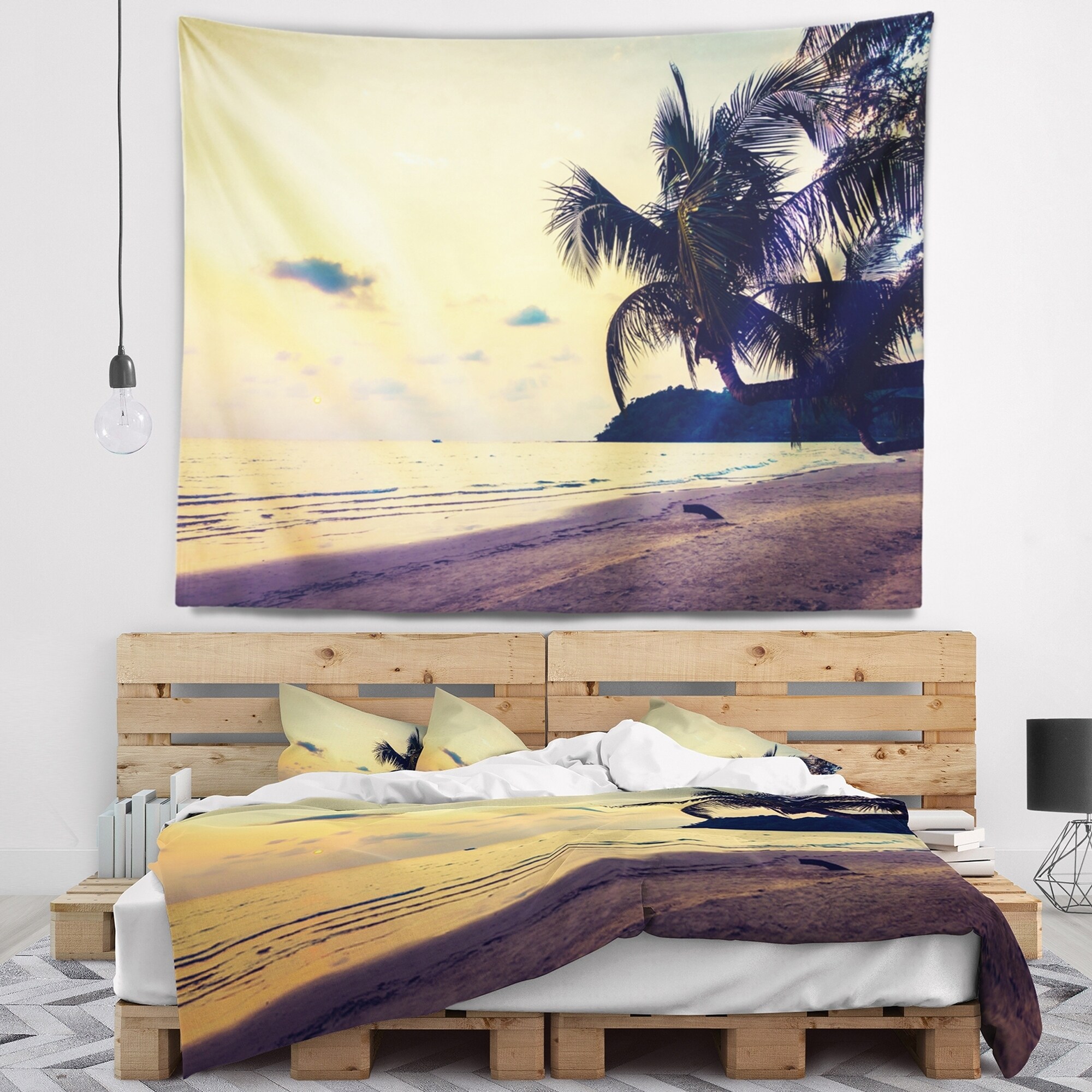 Designart 'Silhouette Coconut Tree' Seascape Wall Tapestry