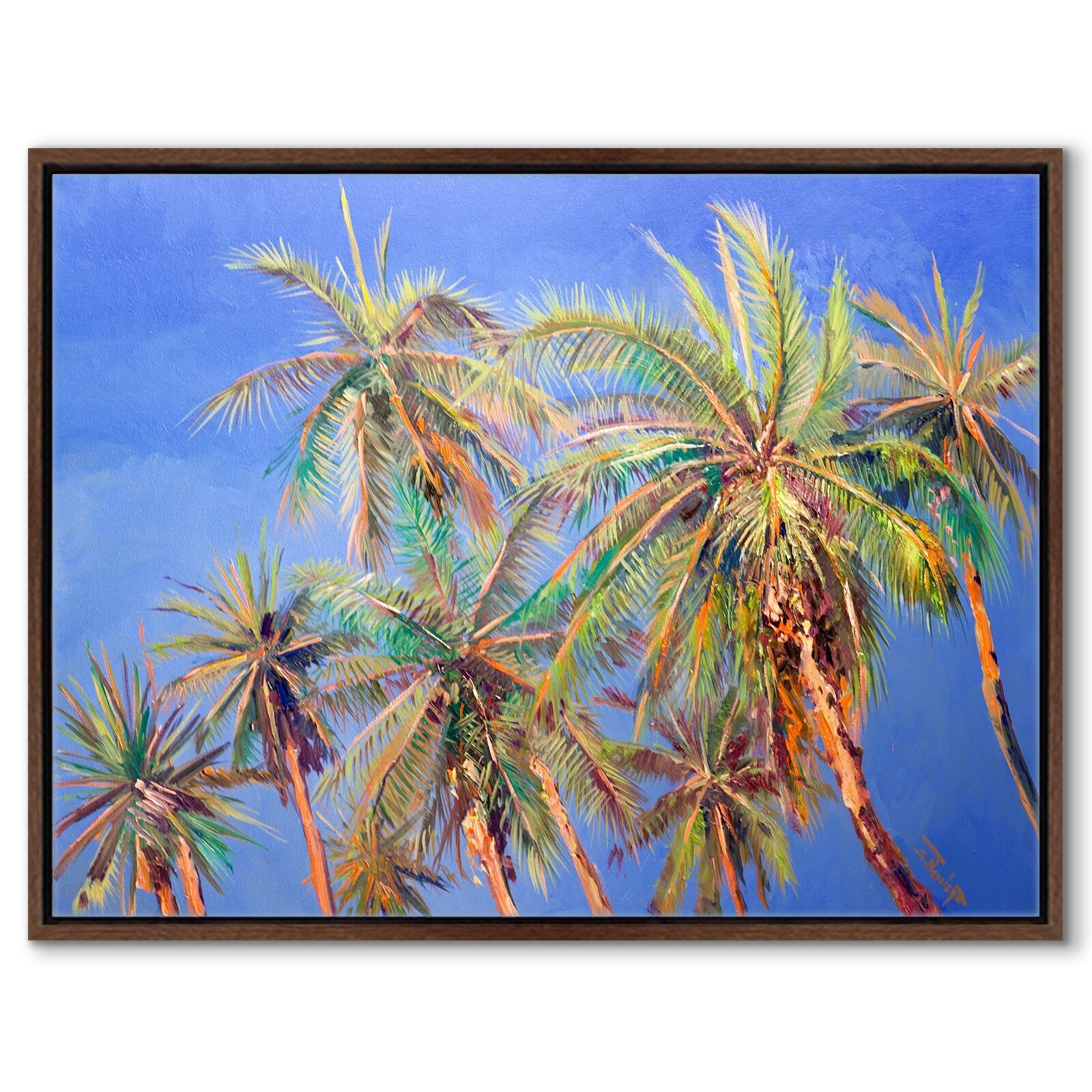 Coconut Palms 35"x43" Walnut Framed Embellished Canvas