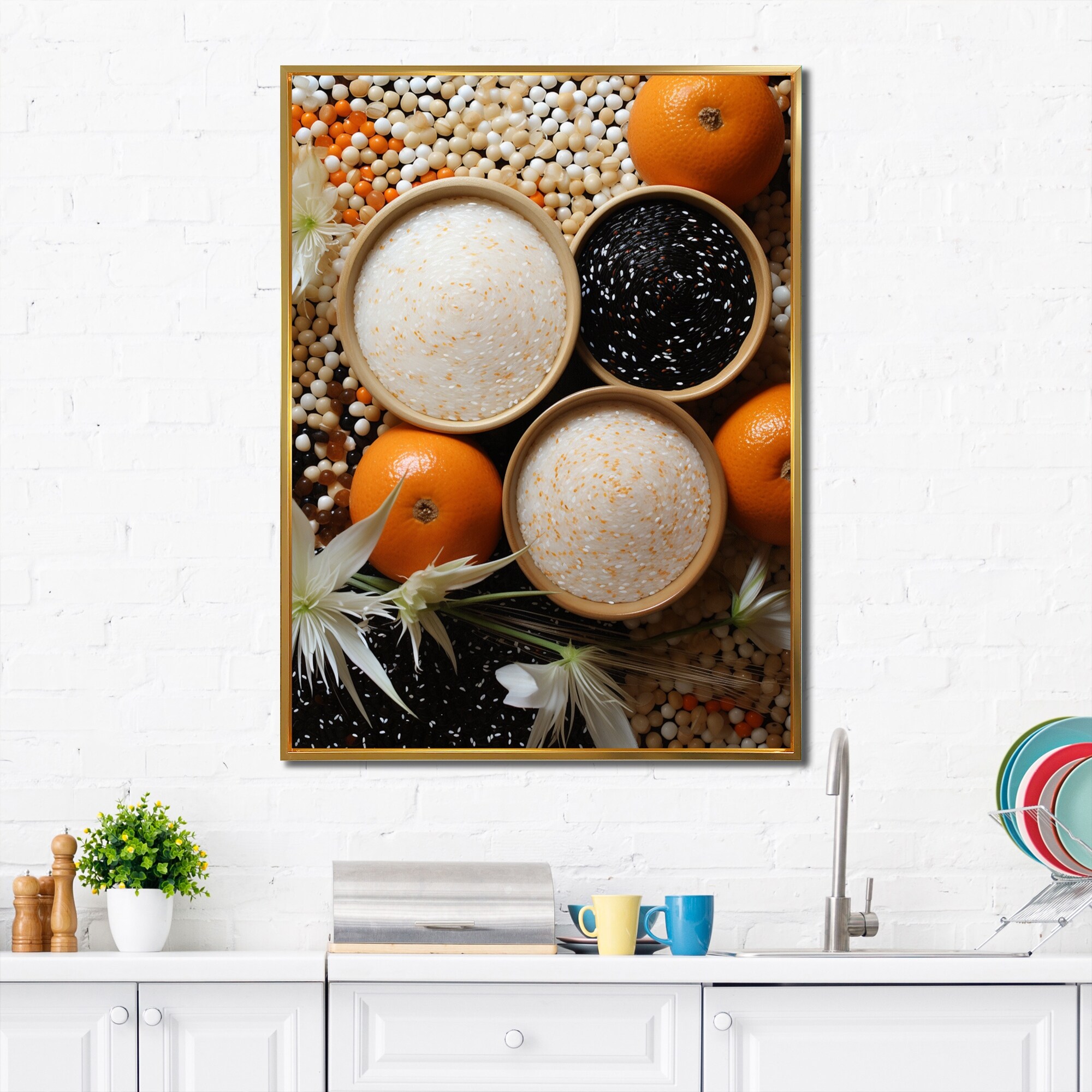 Designart "Fruit Tropical Coconut Pointillism I" Fruits Framed Canvas Print