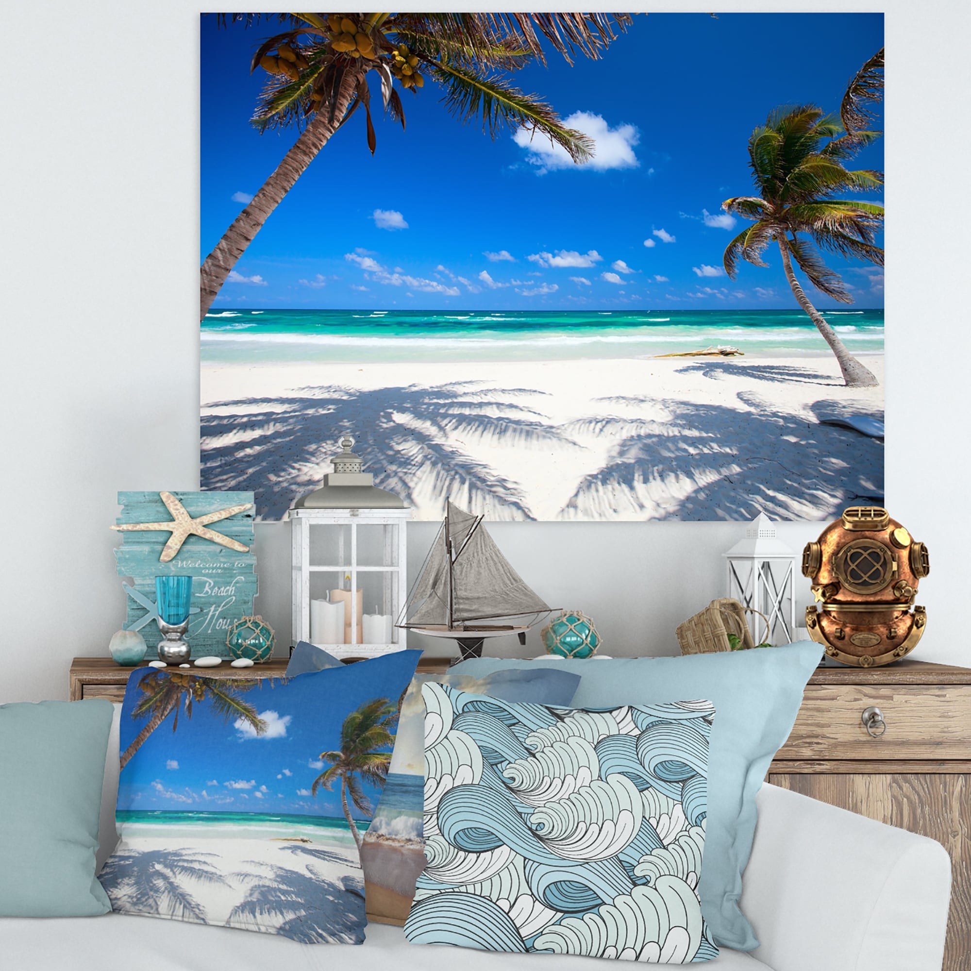 Designart - Coconut Palms at Beach - Photo Landscape Canvas Art Print