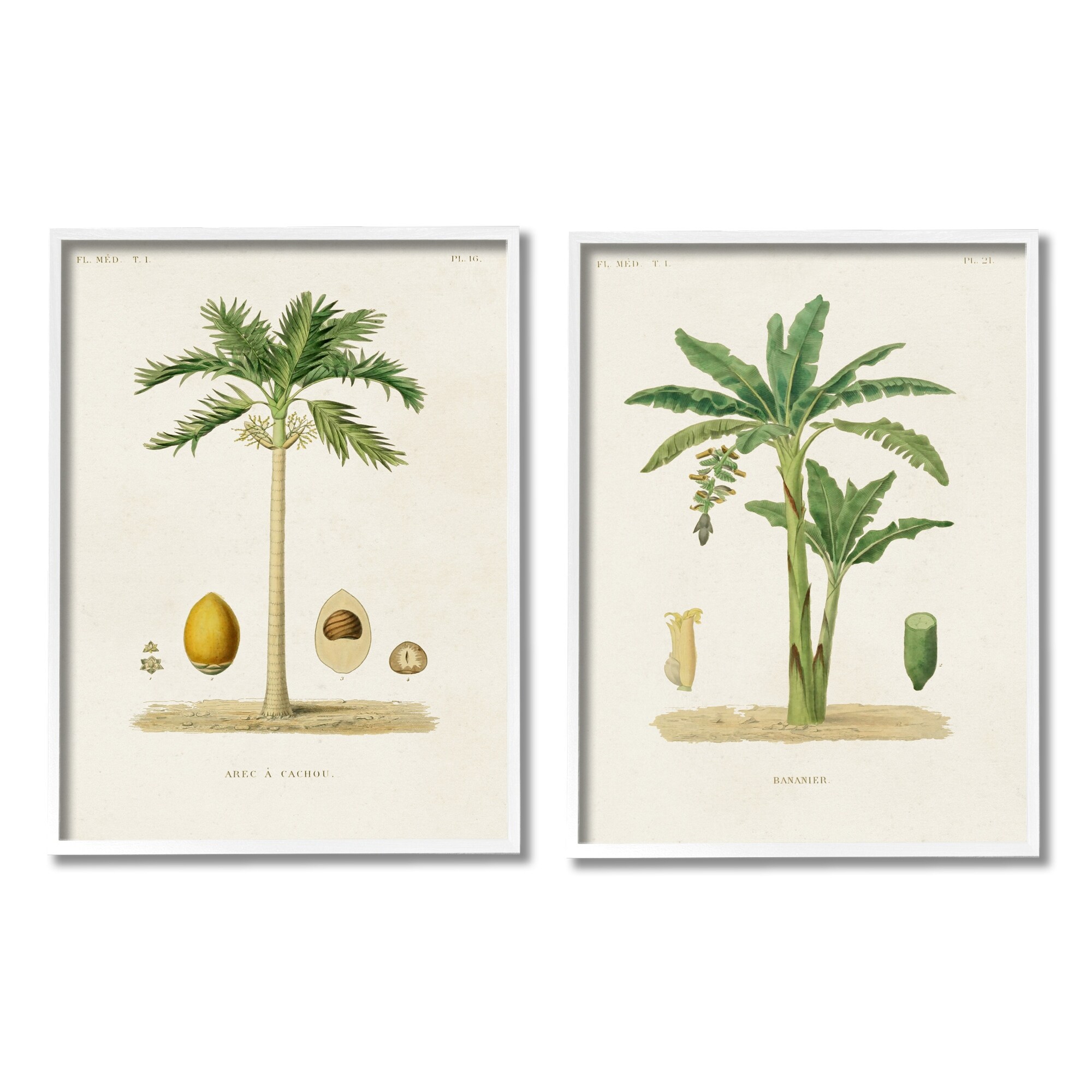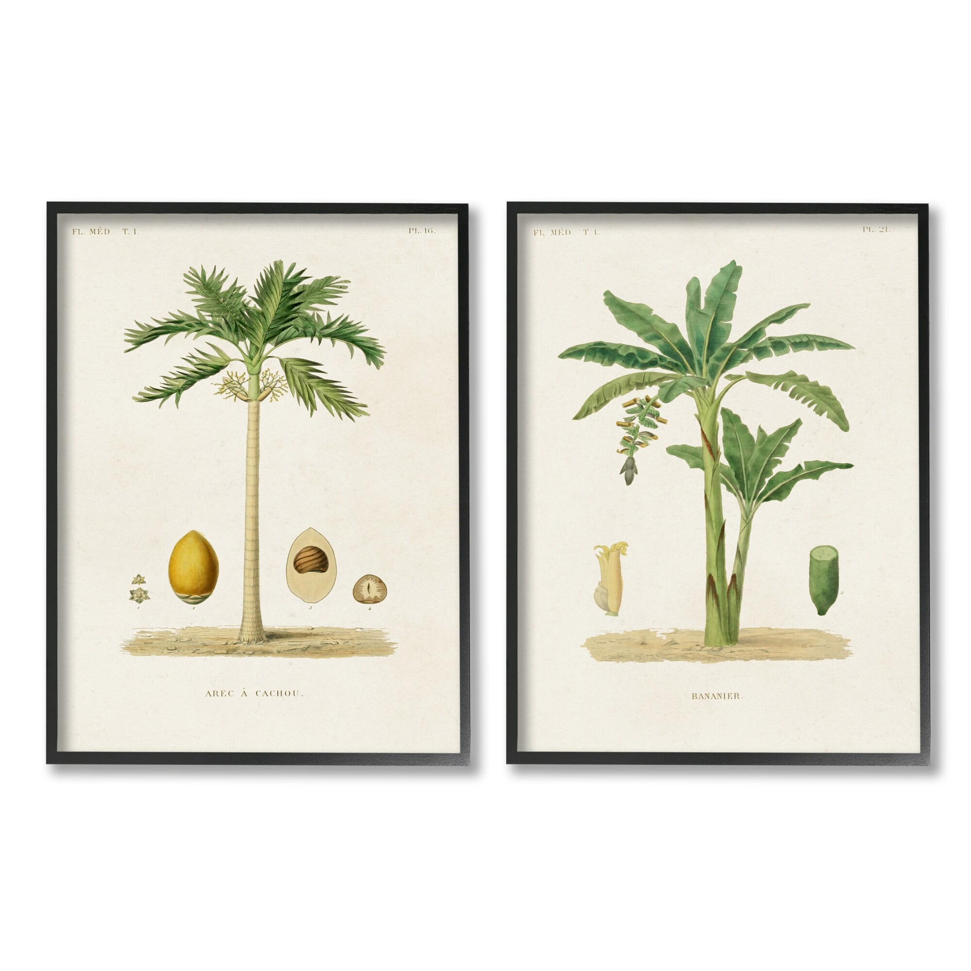 Stupell Minimal Green Palm tree Coconuts Diagram Illustration Framed 2 Piece Wall Art