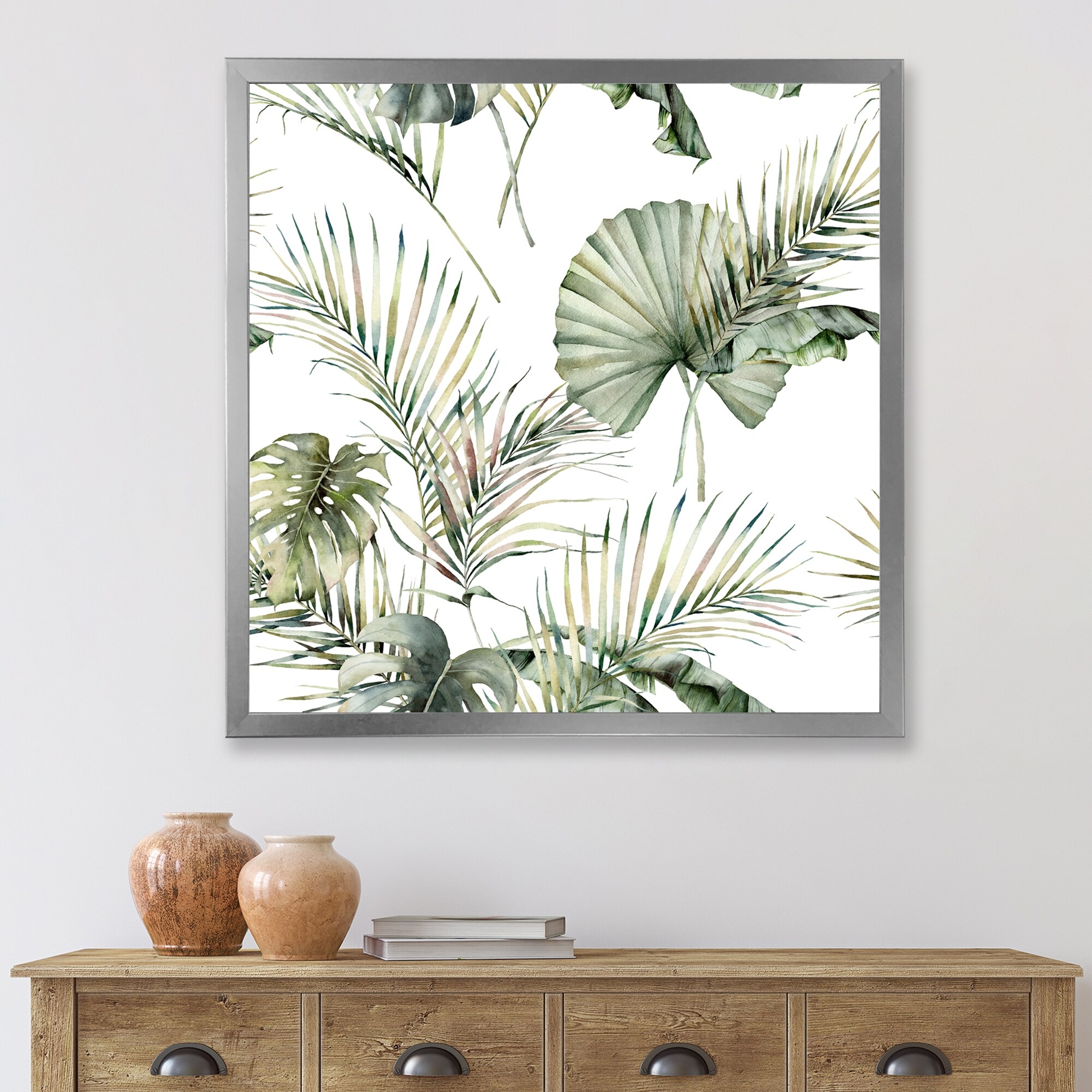 Designart "Tropical S Pattern With Monstera & Coconut Leaves" Traditional Framed Art Print