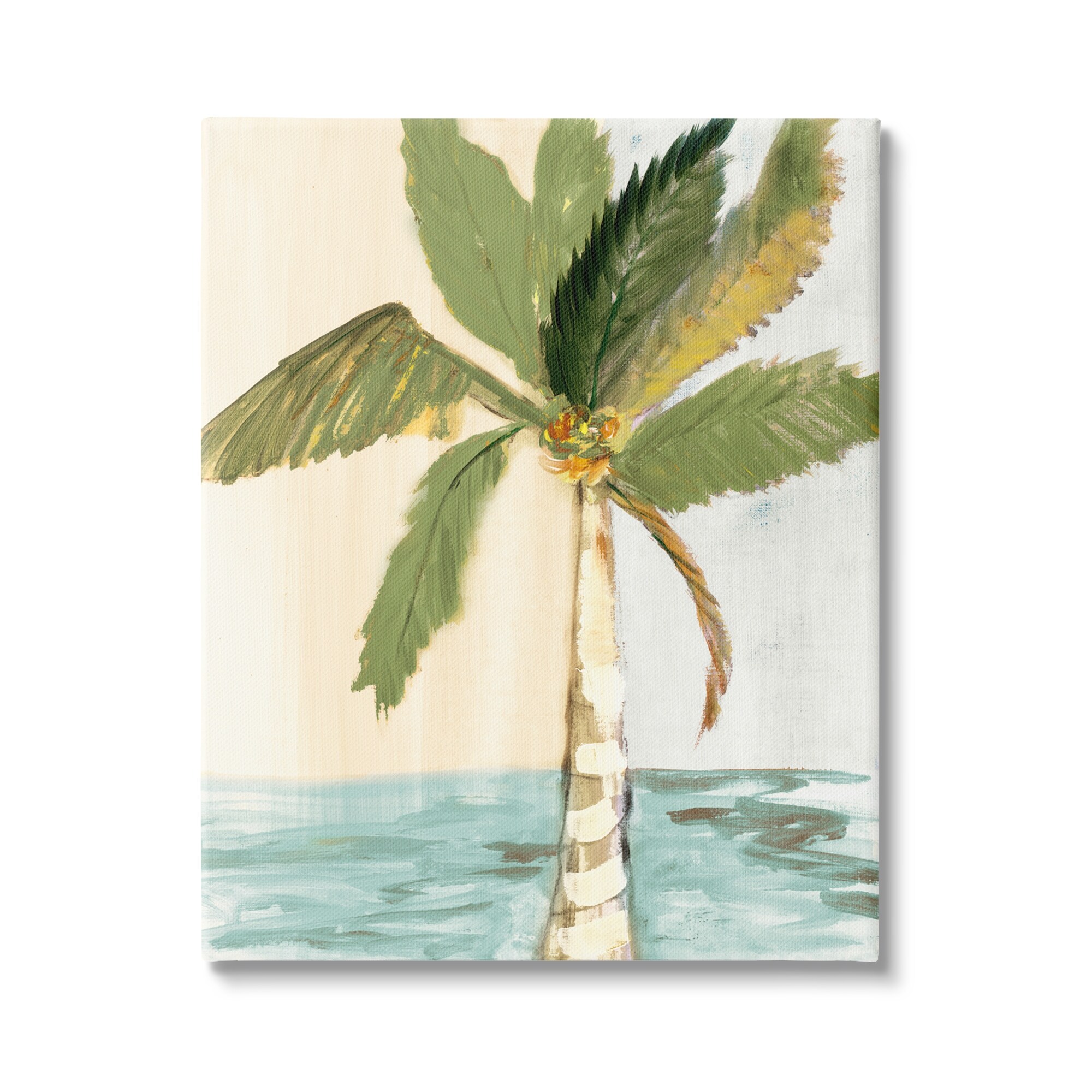 Stupell Green Palm Tree Leaves Coconuts Oceanfront Beach Canvas Wall Art