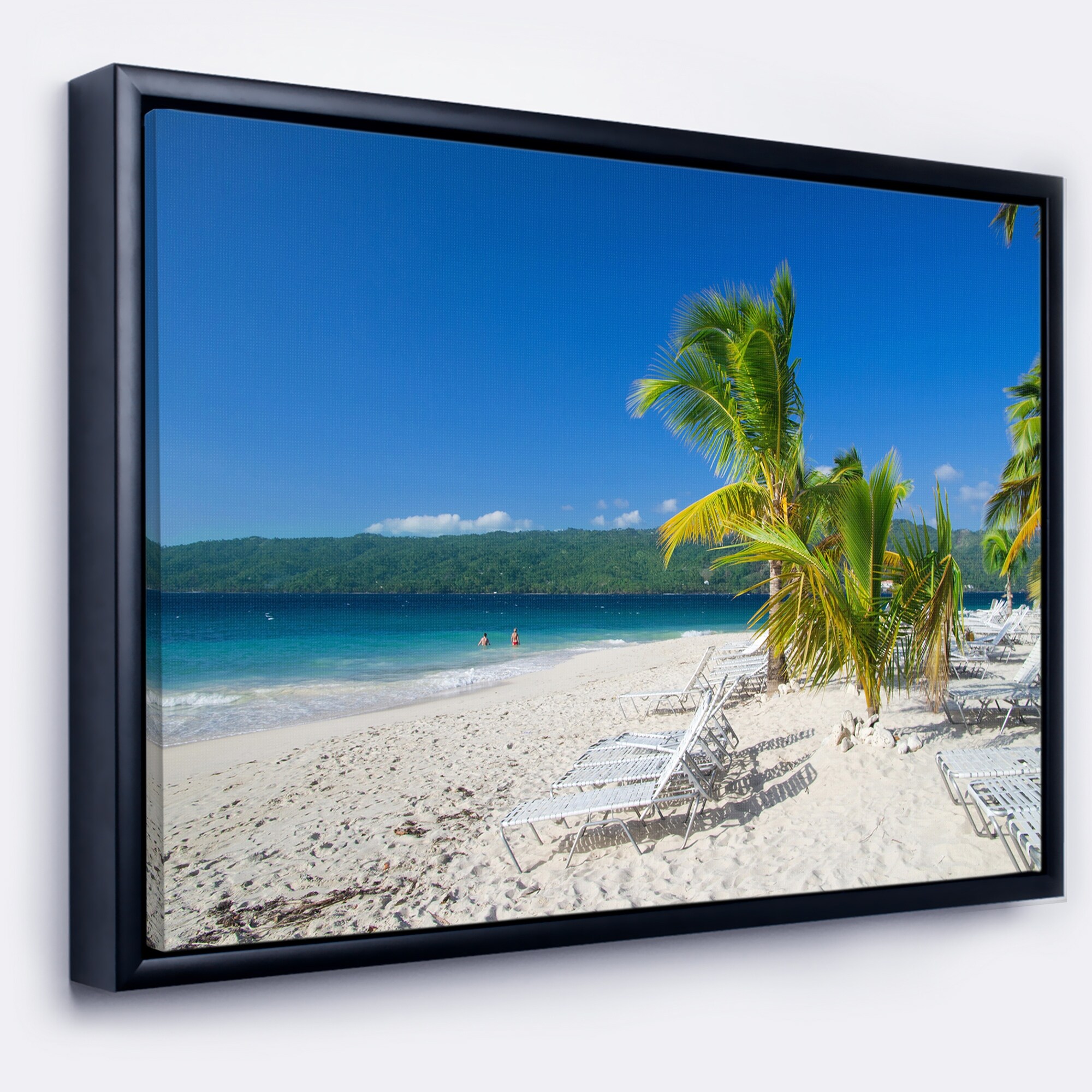 Designart "Beach with Coconut Palm Trees" Landscape Photo Framed Canvas Art