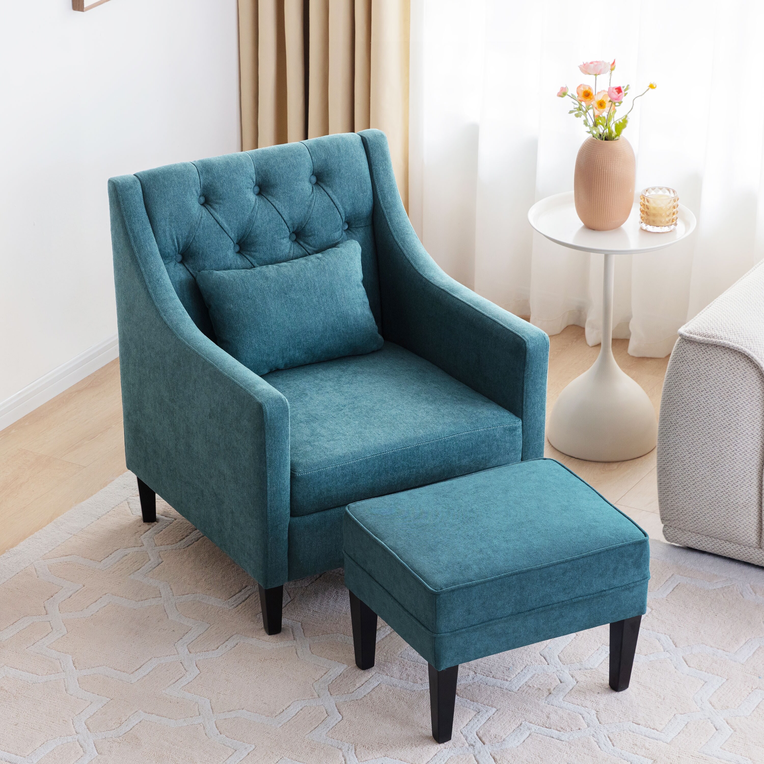 HUIMO Arm Chair Comfy Club Chair with Ottoman and Pillow / Beige/ Dark Teal/ Blue