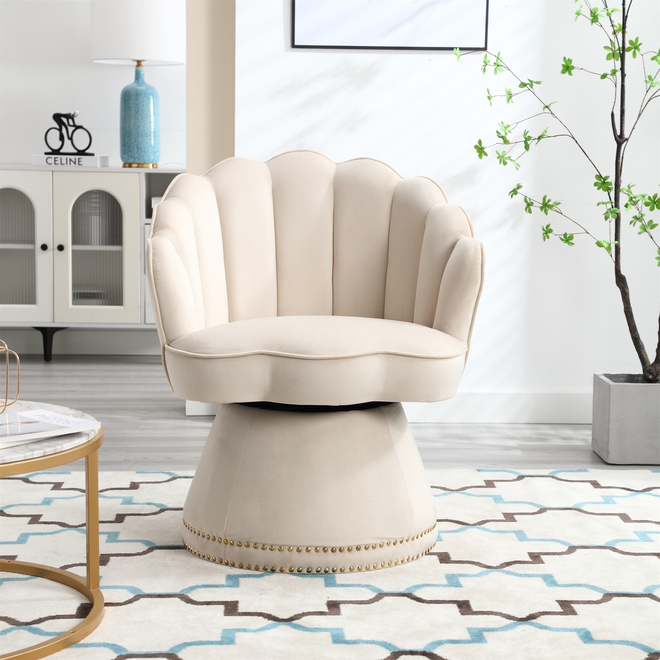 Velvet Swivel Barrel Chair, Comfy Round Accent Chair