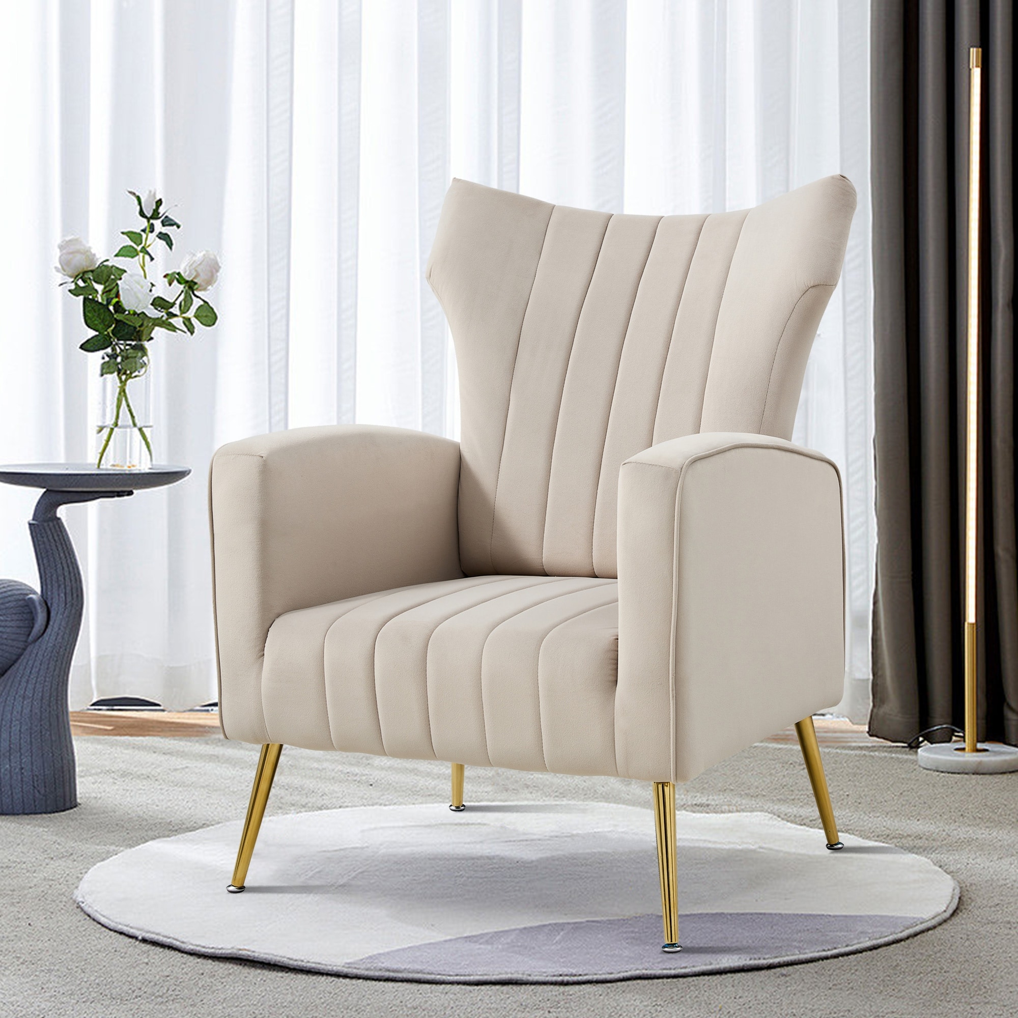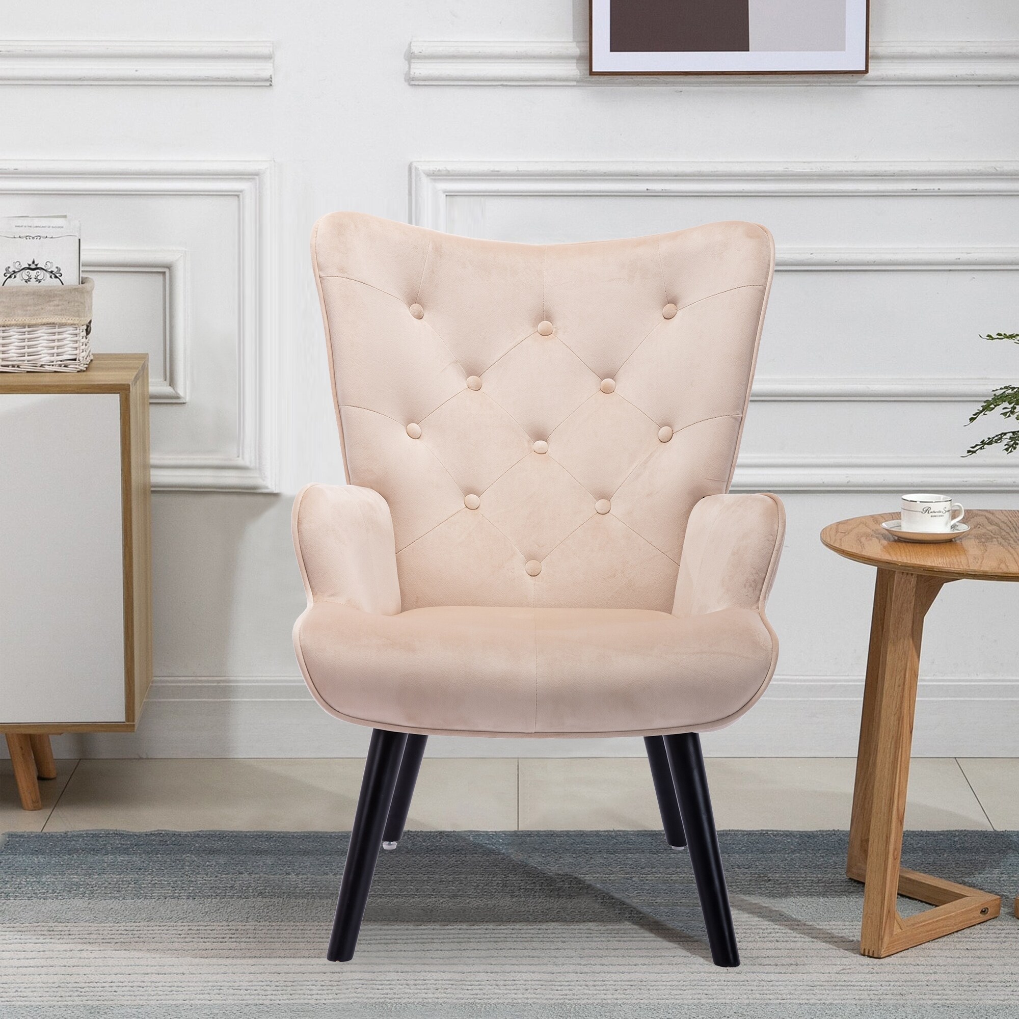 Modern Velvet Accent Chair with Arms, Wingback Reading Chair, Comfy Upholstered Single Leisure Sofa