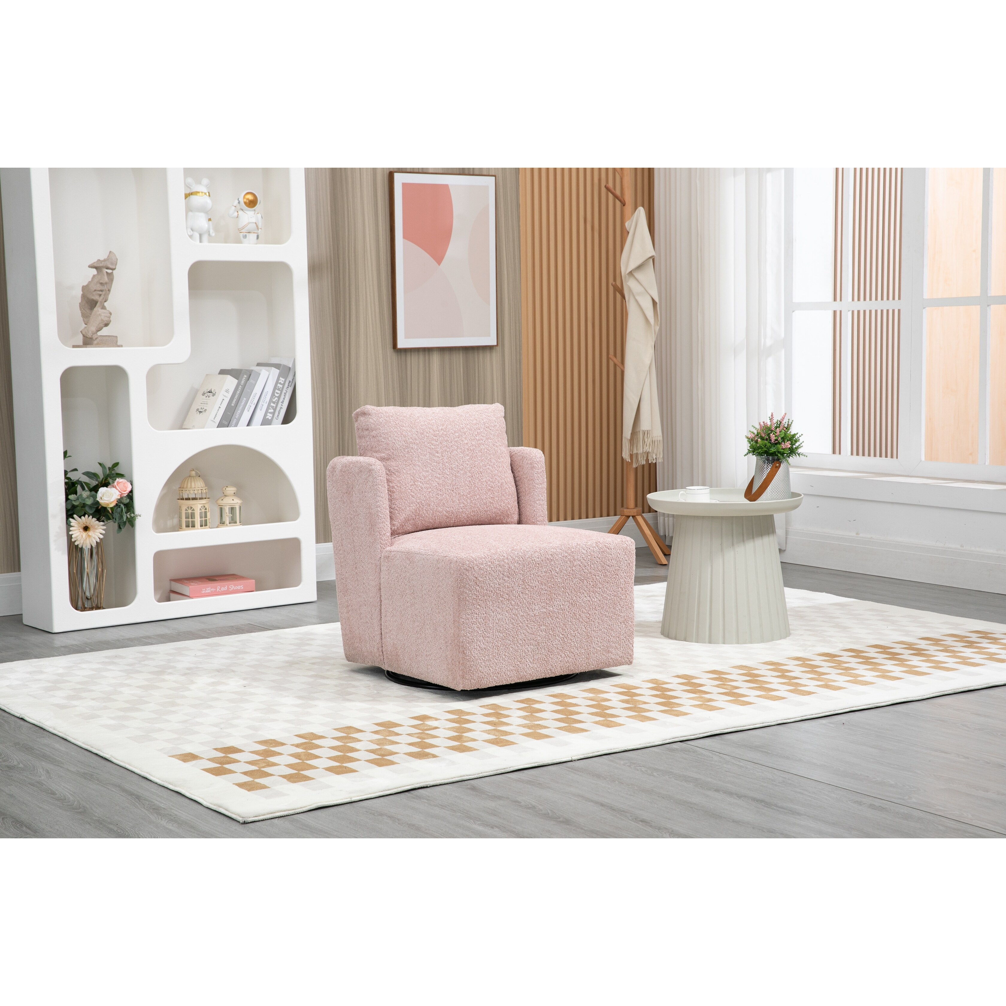 Swivel Lounge Chair, 23.6" Wide Upholstered Comfy Swivel Accent Sofa Chair for Living Room, Bedroom